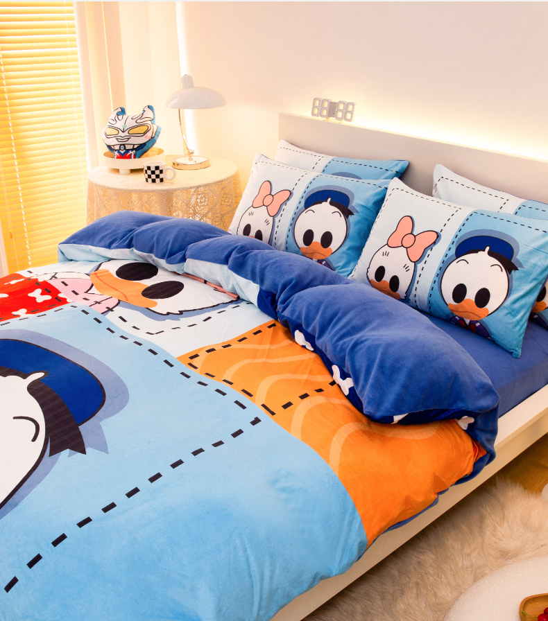 一电 2025外贸跨境电商儿童卡通床上四件套亲肤牛奶绒学生三件床单被套加大珊瑚宝宝卡通3 上课