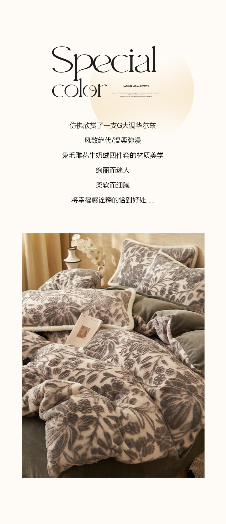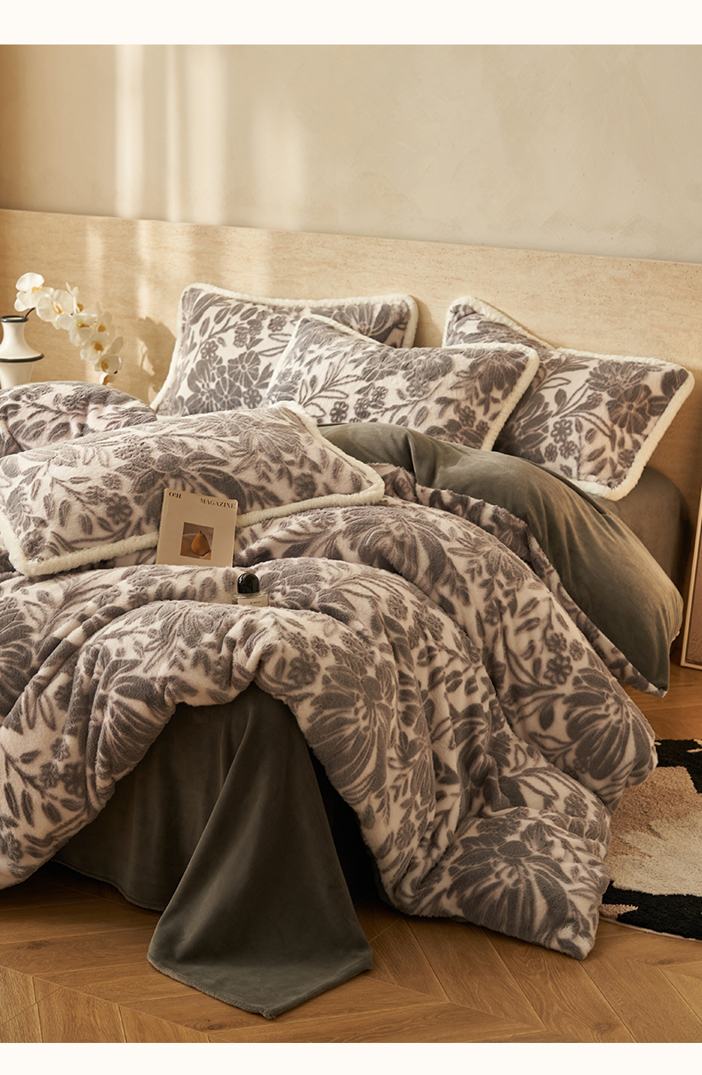 当前位置: 91家纺网 > 商品网购 > 床品套件 > 四件套 > 雕花绒四件套 > 寐绸家纺 2025秋冬新款350g兔毛雕花牛奶绒四件套 秘境