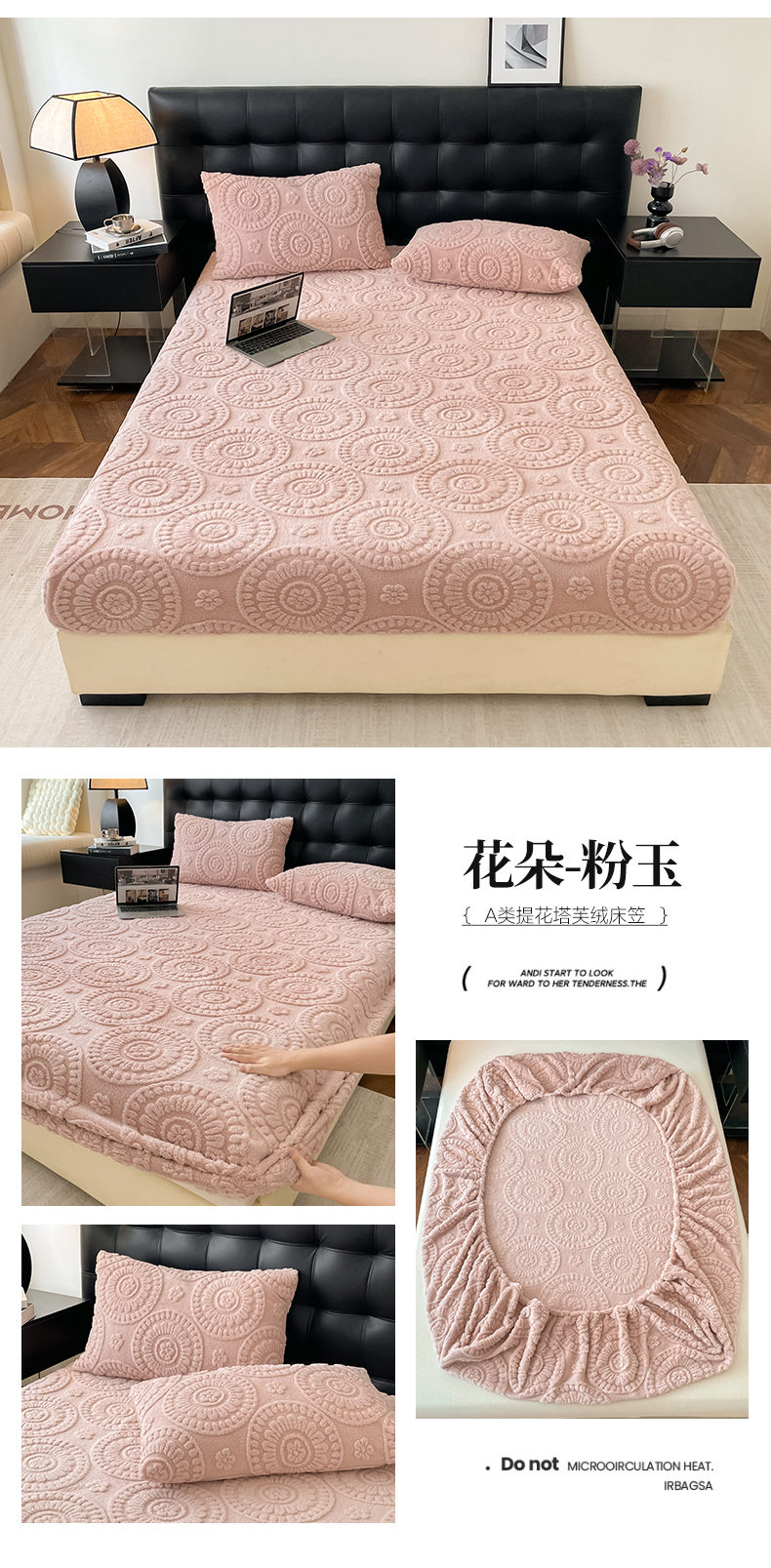 • 91家纺网 家纺一手货源 找家纺 莱家富 2026新款塔芙绒舒棉绒雕花绒单床笠 床笠单件-花朵系列(可提供压缩) 花朵-粉玉