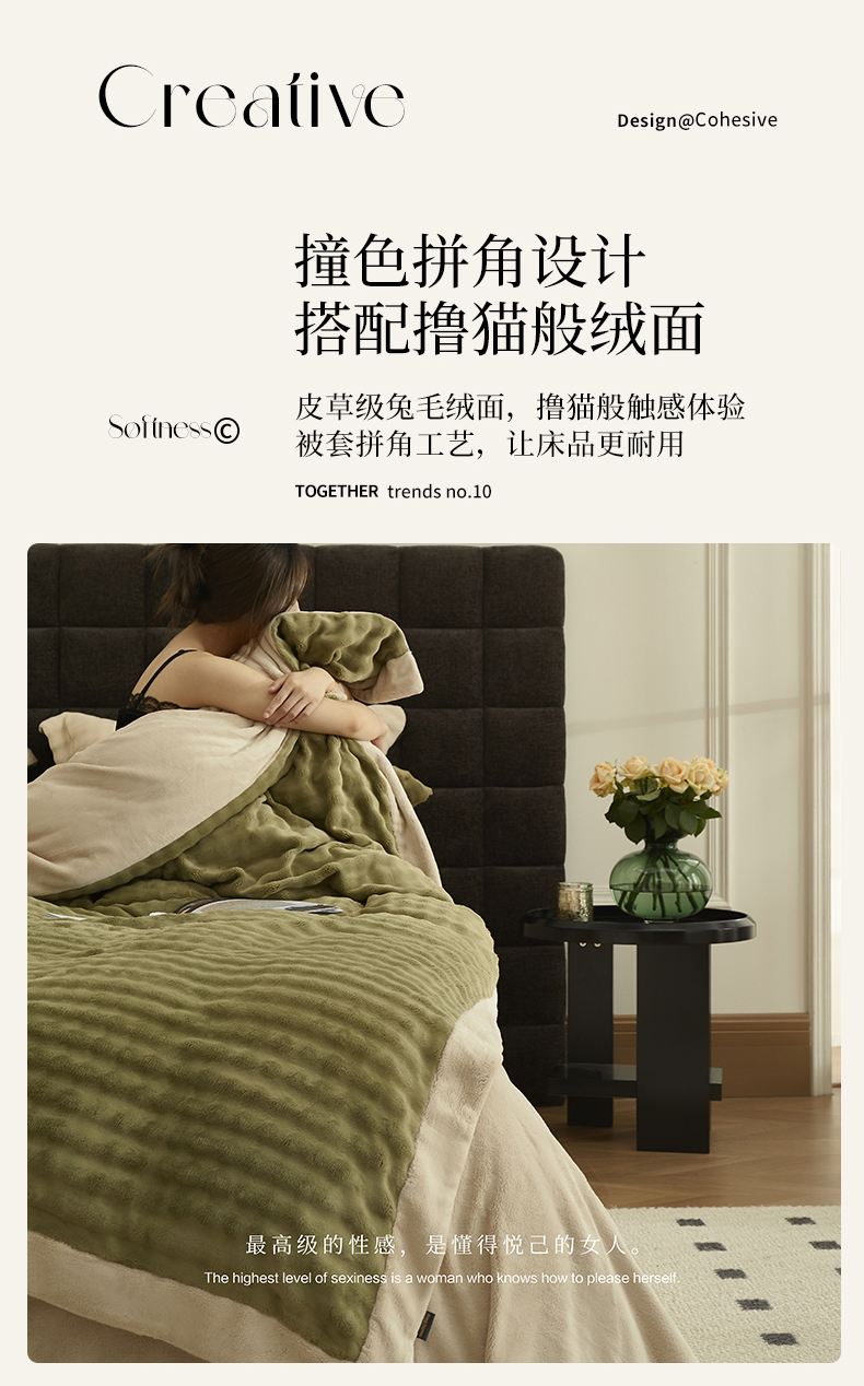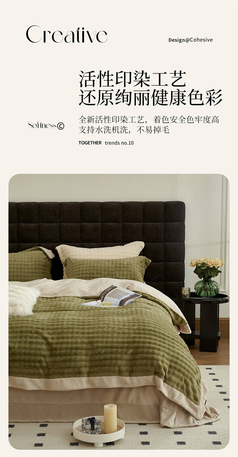 商品名称:新月家纺(锦威郎) 2025新款加厚皮草兔毛绒牛奶绒系列四件套9.2斤 托斯塞纳+玛雅绿