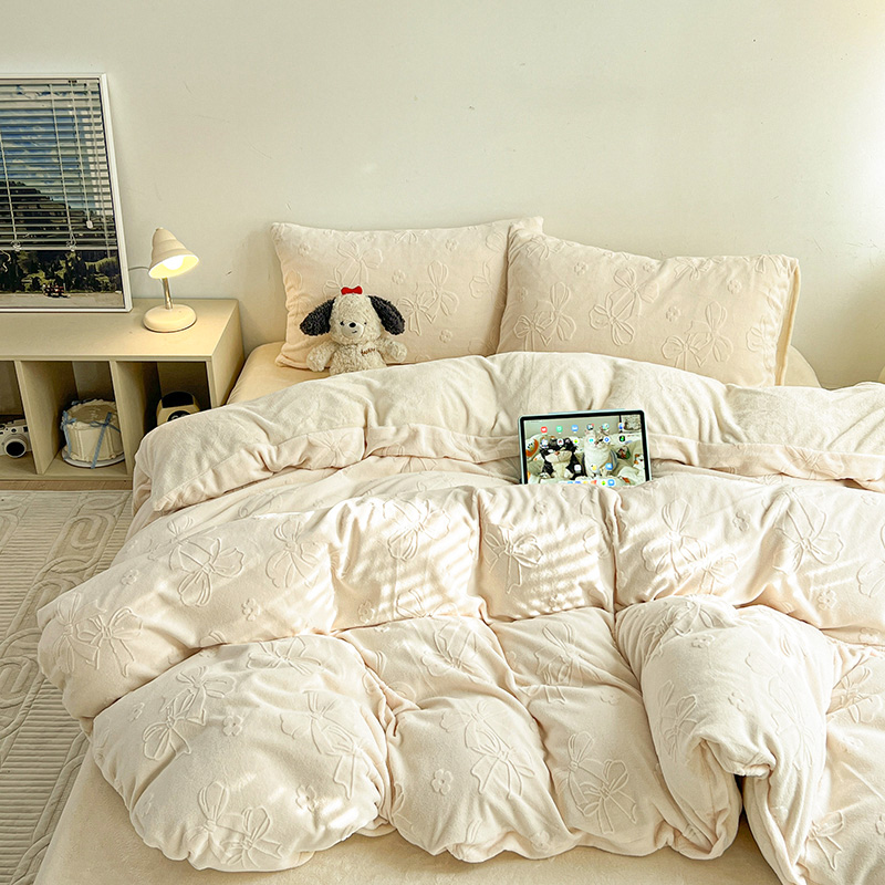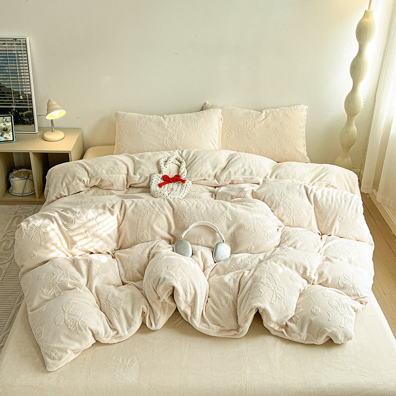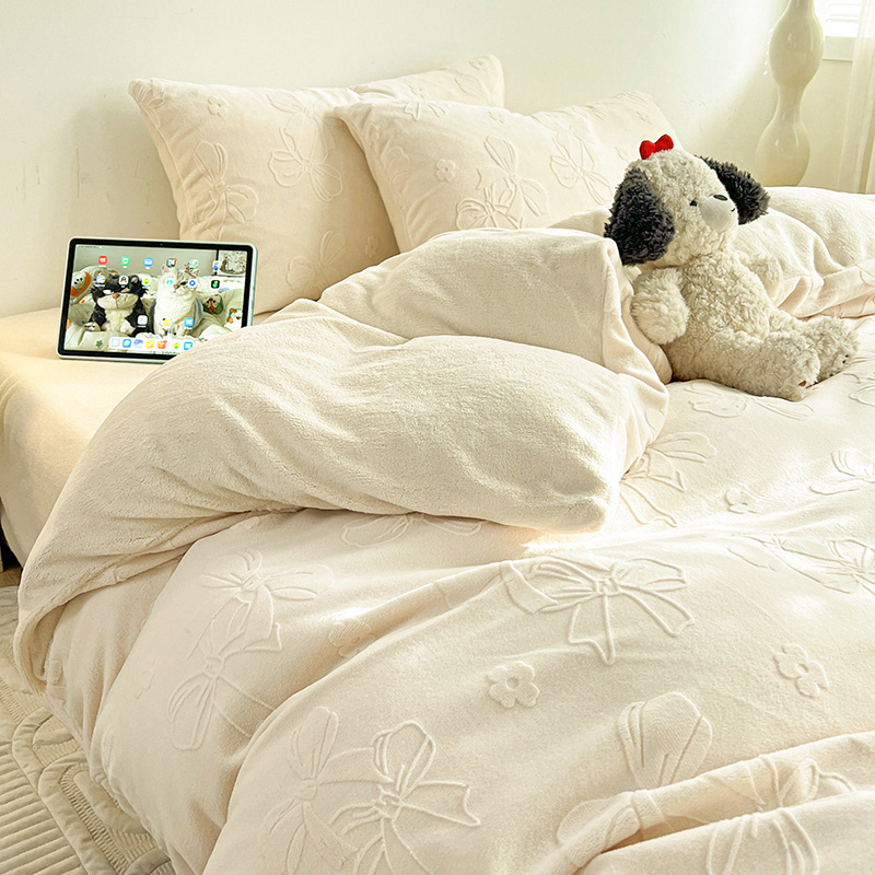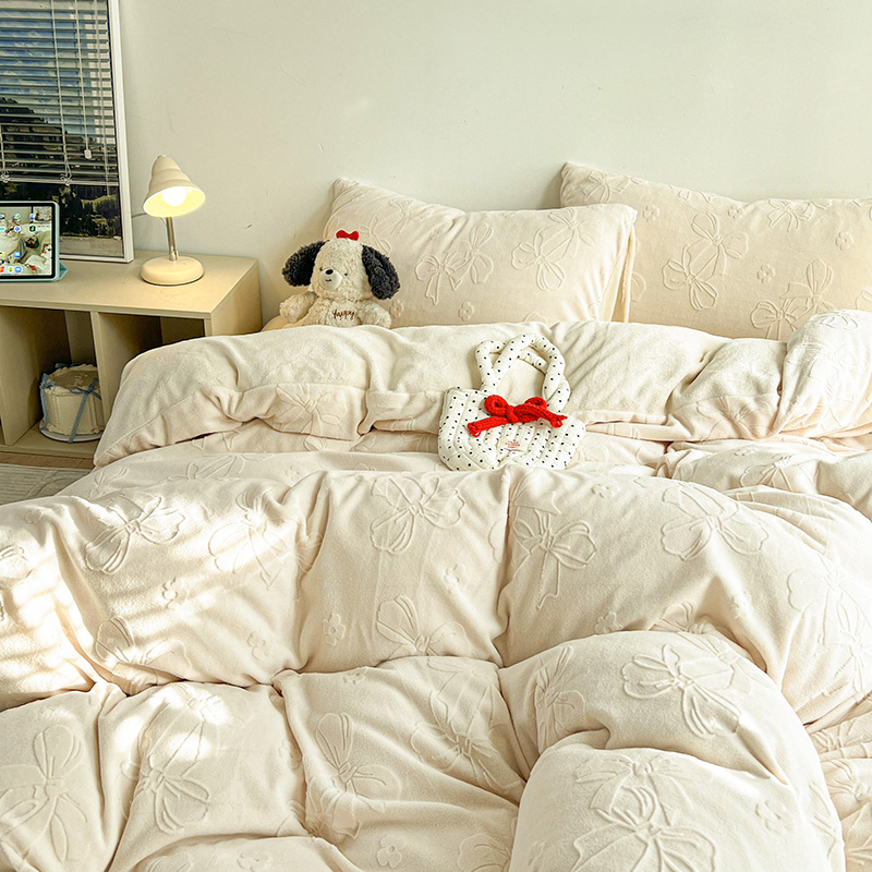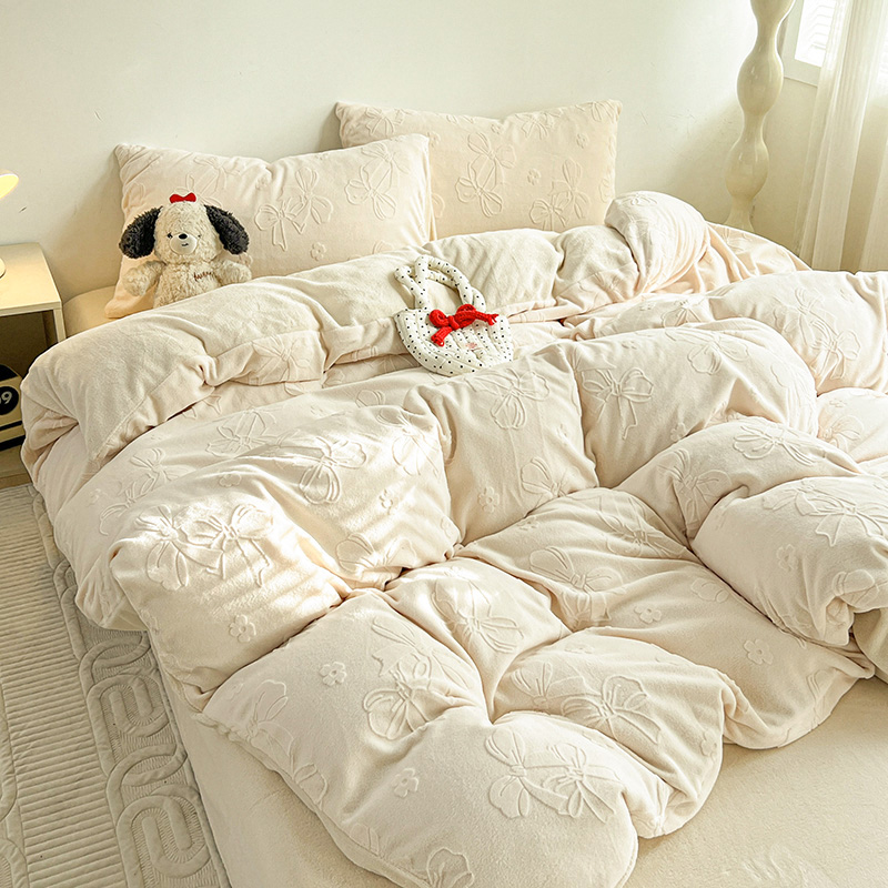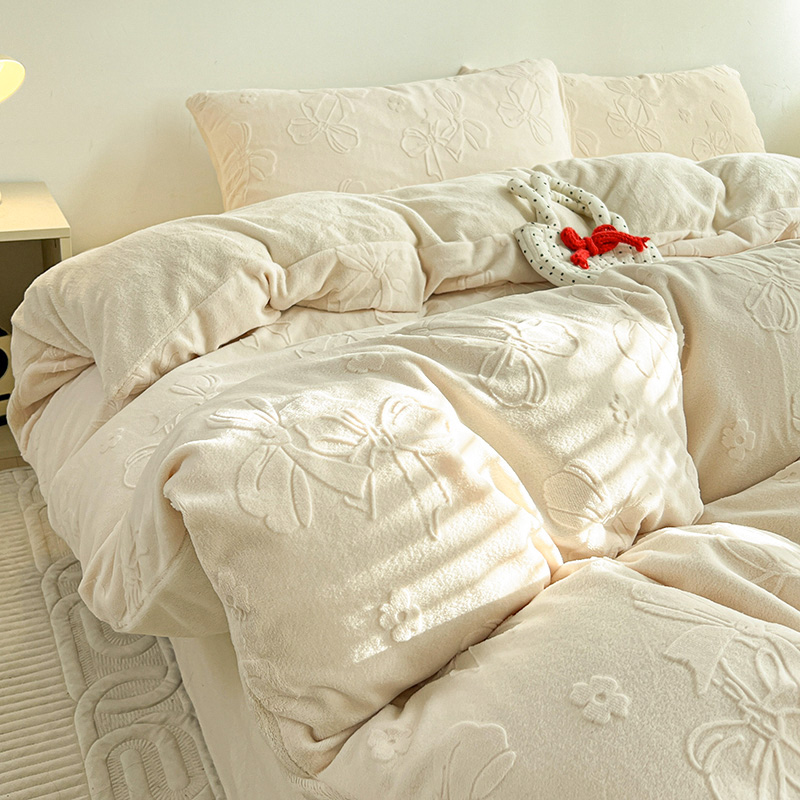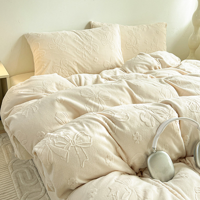 当前位置: 91家纺网 > 商品网购 > 床品套件 > 四件套 > 牛奶绒四件套 > 耀悦家纺 2025新款INS博主风蝴蝶伴侣立体A类全消光雕花牛奶绒四件套 蝴蝶结伴侣-奶白