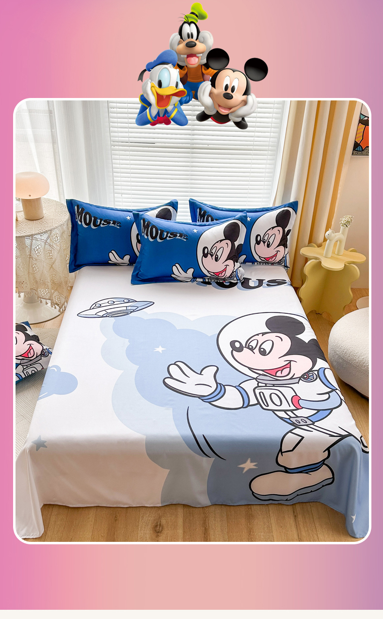 • 91家纺网 家纺一手货源 找家纺 一电 2025新款卡通床单单件被单学生宿舍被罩三件套单人儿童上下床床单-第三批 太空米奇
