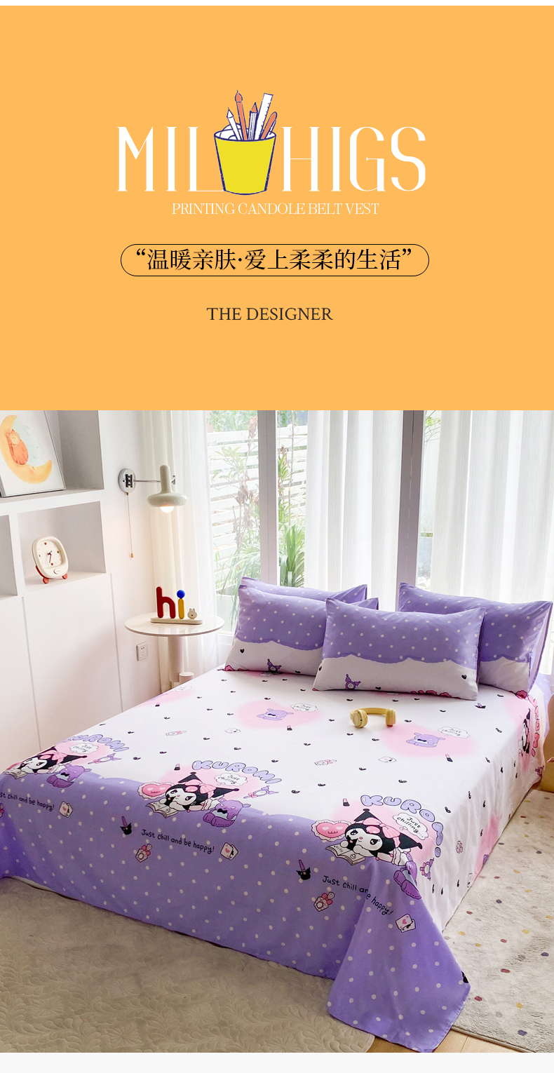 • 91家纺网 家纺一手货源 找家纺 一电 2025新款卡通床单单件被单学生宿舍被罩三件套单人儿童上下床床单-第五批 卡牌库洛米