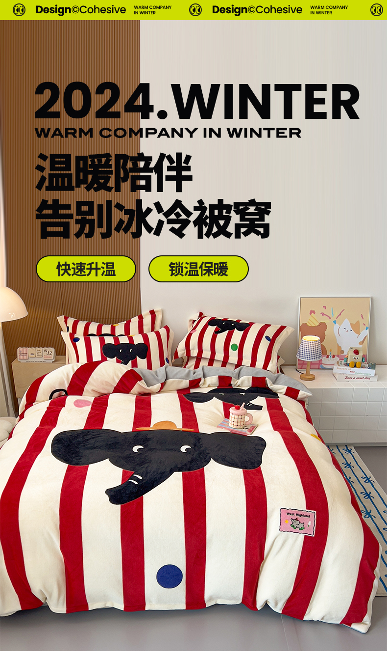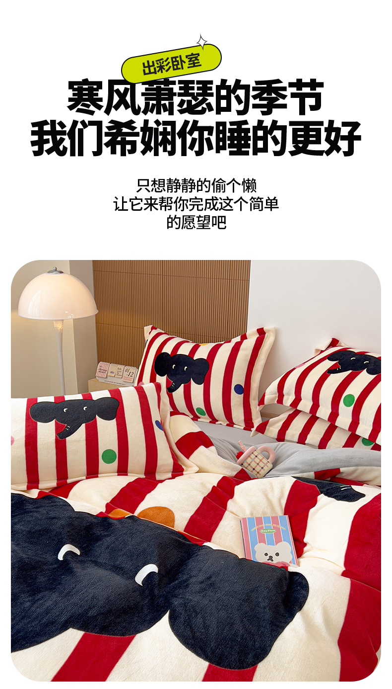 福来临家纺 2025牛奶绒大版卡通四件套 波点象