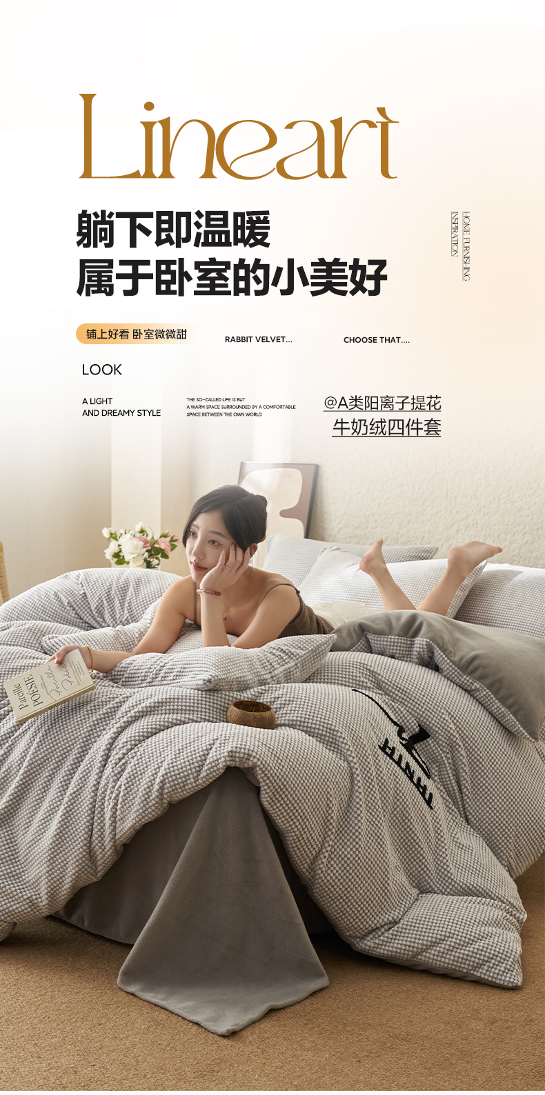 (总)早晨家纺 2025新款高克重牛奶绒烂花四件套,林影素韵,粉花眠,花眠灰,金叶漫,浅叙,圈语眠,素花漫庭,素纹,雅庭花叙,叶素,叶语灰,叶韵