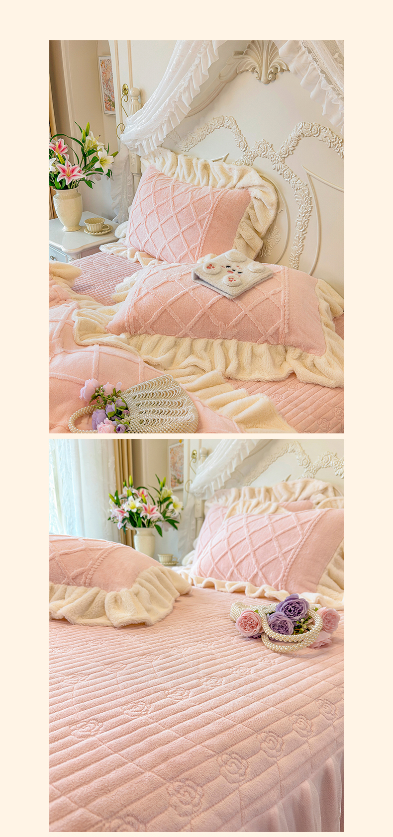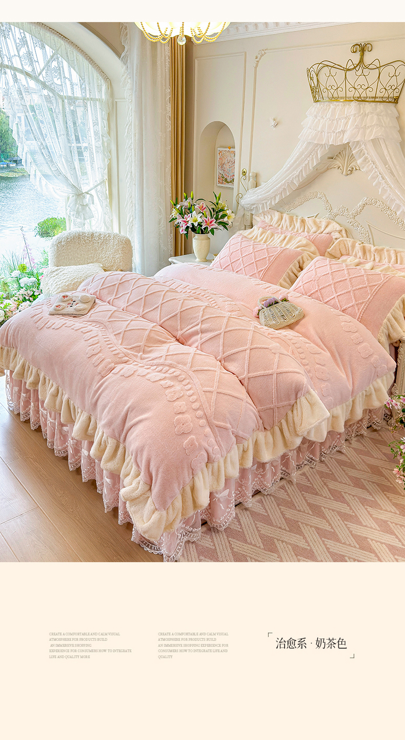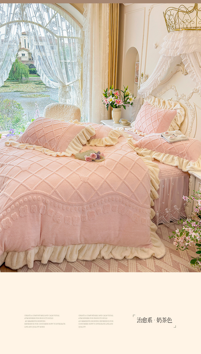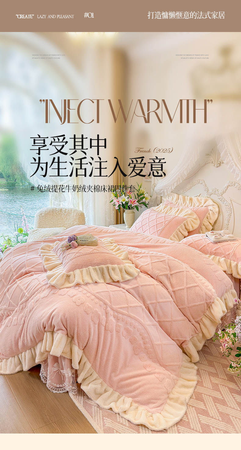 (总)宜凡家纺 2025新款兔绒提花牛奶绒夹棉床裙四件套,爱心 少女粉,爱心 粉紫,爱心 驼色,蝶舞 大红,蝶舞 米色,蝶舞 浅紫,蝶舞 玉色,简爱 苍青,简爱 豆沙紫,简爱 玉色,樱桃 苍青,樱桃 豆沙紫,樱桃 奶油白