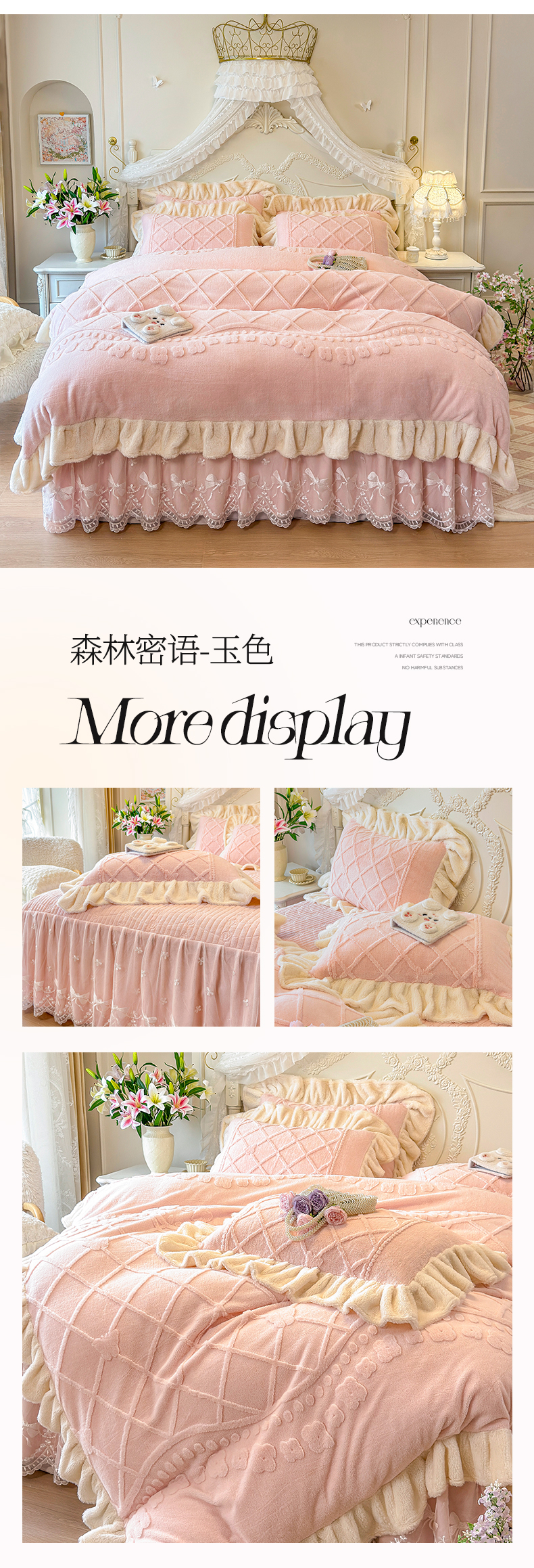 宜凡家纺 2025新款兔绒提花牛奶绒夹棉床裙四件套(森林密语) 森林密语-玉色