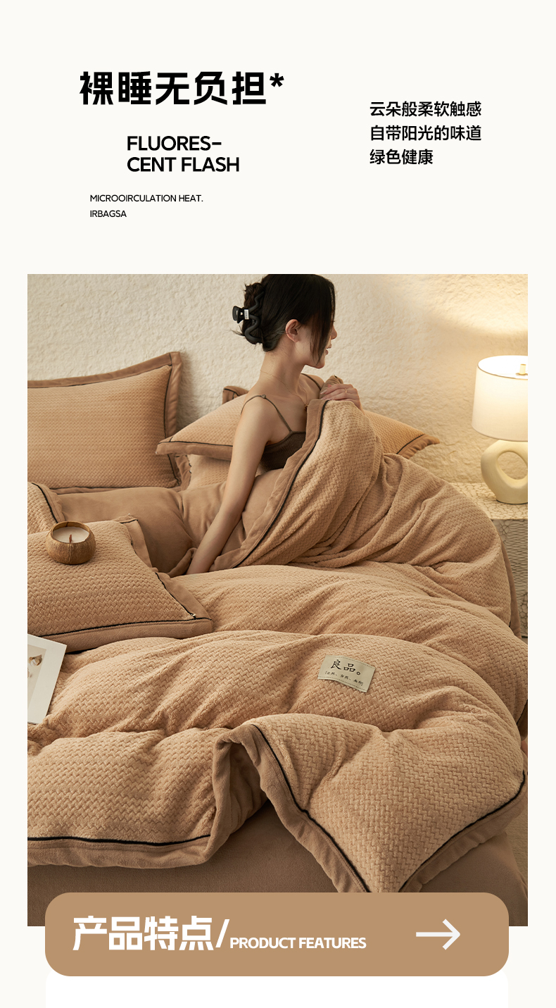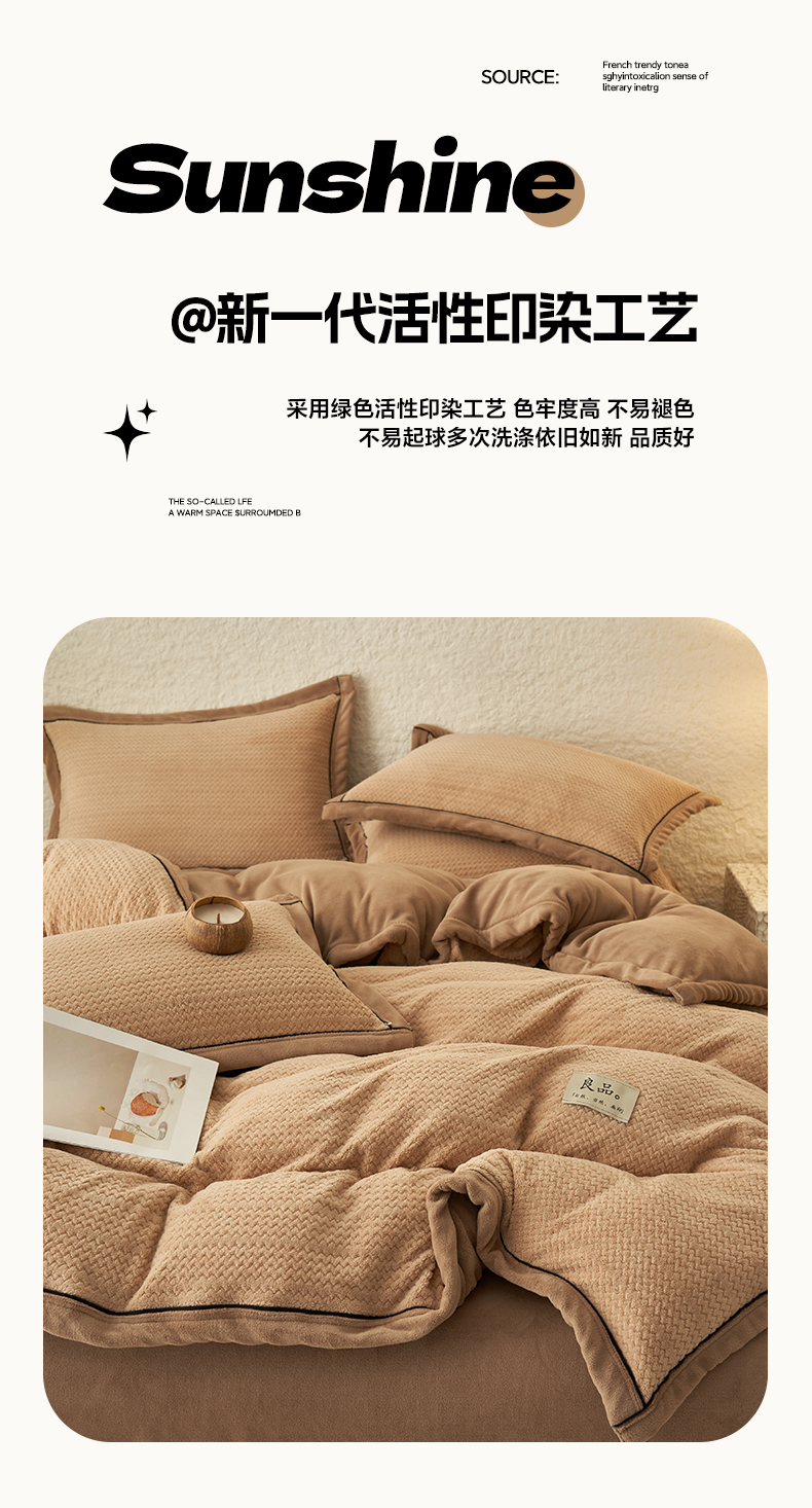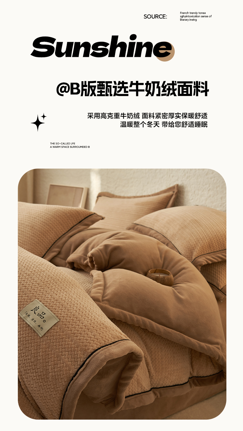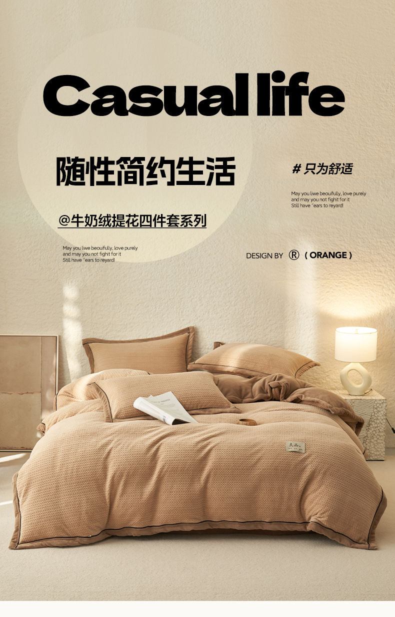 早晨家纺 2025新款青沐款牛奶绒提花四件套 青沐-米驼