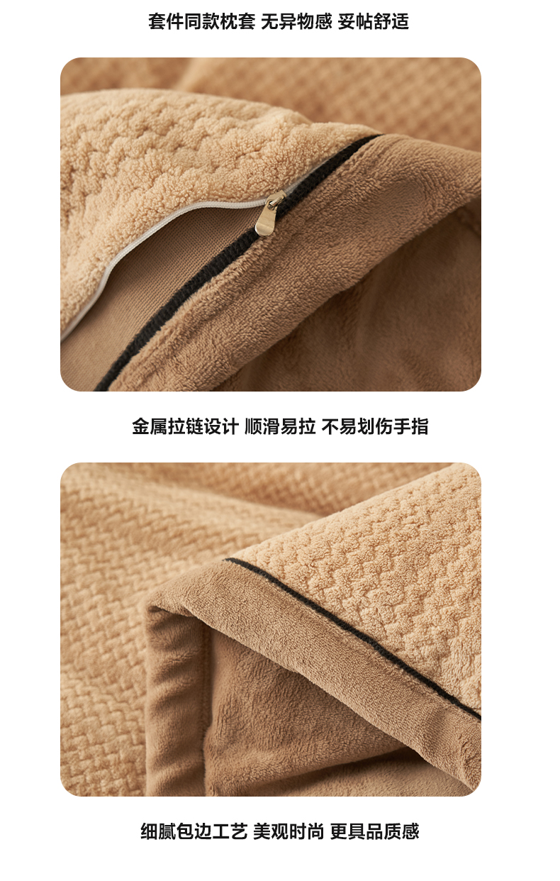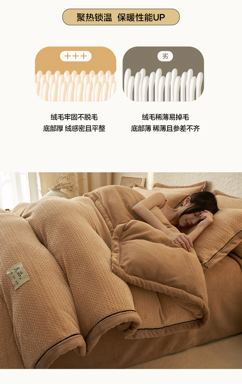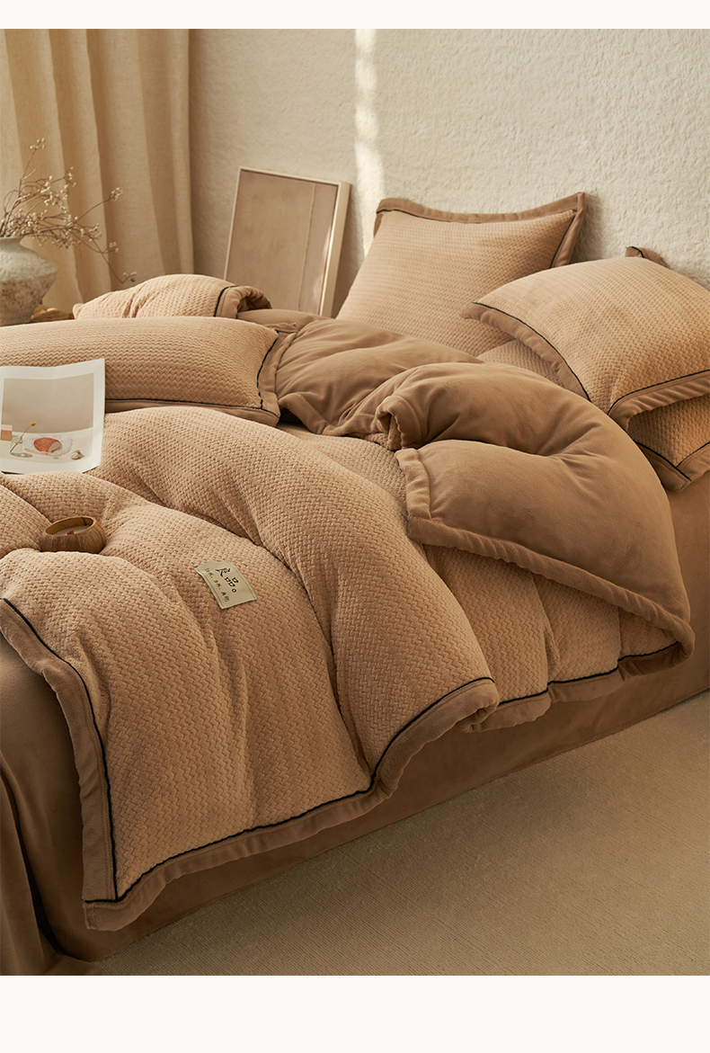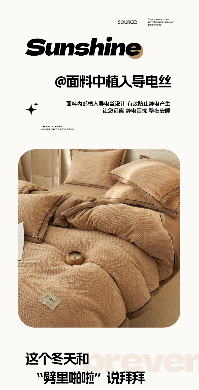 早晨家纺 2025新款青沐款牛奶绒提花四件套 青沐-米驼