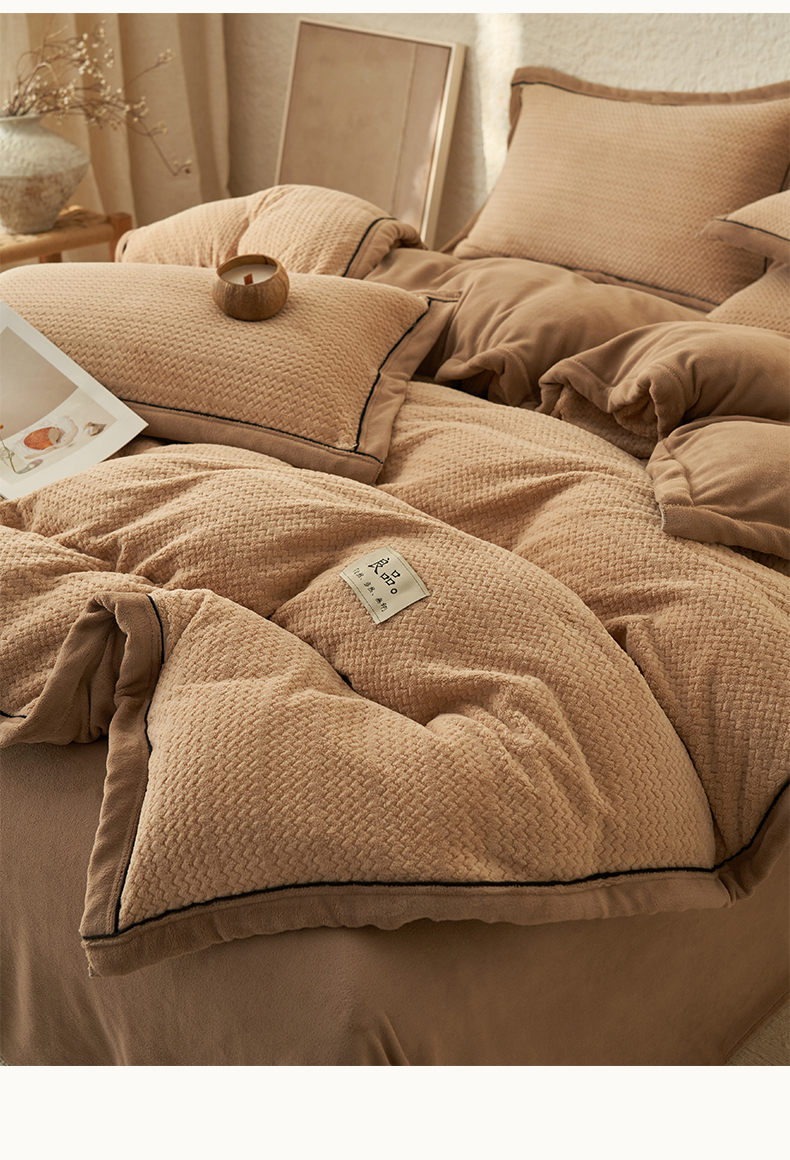 商品名称:早晨家纺 2025新款青沐款牛奶绒提花四件套 青沐-米驼