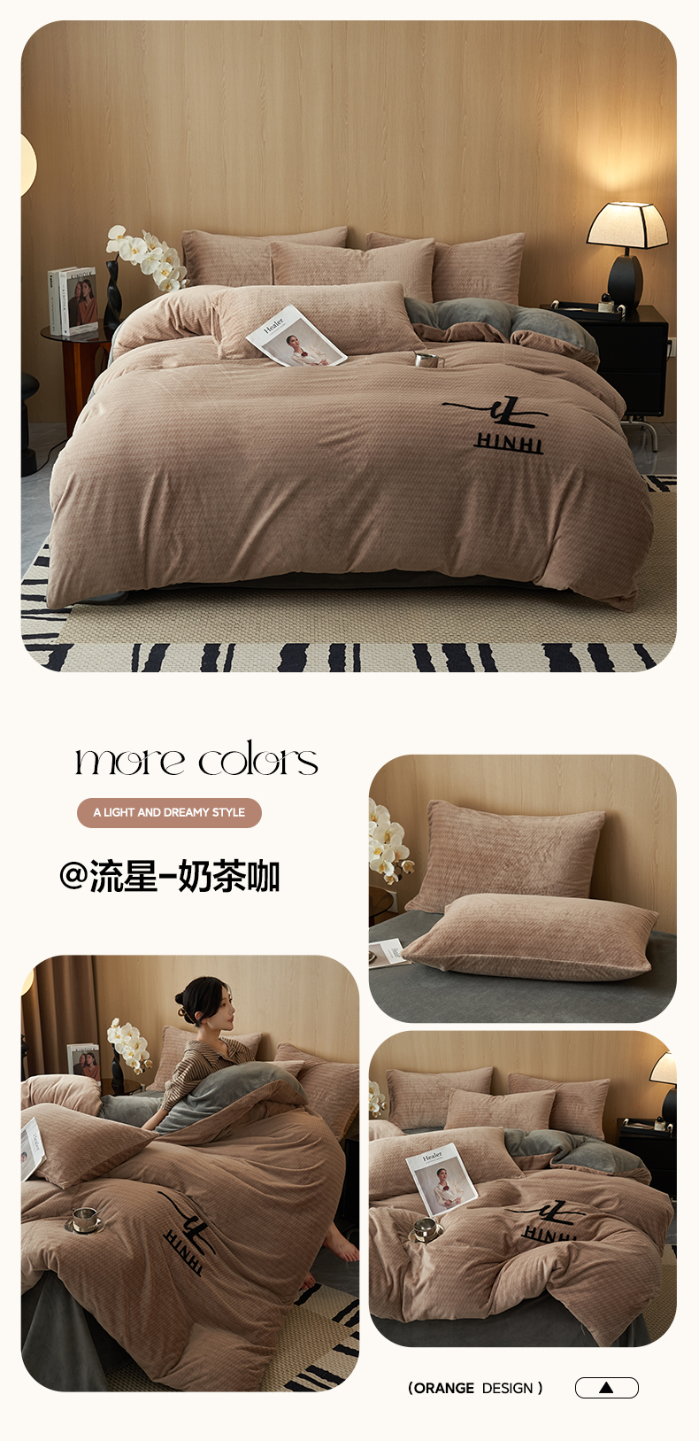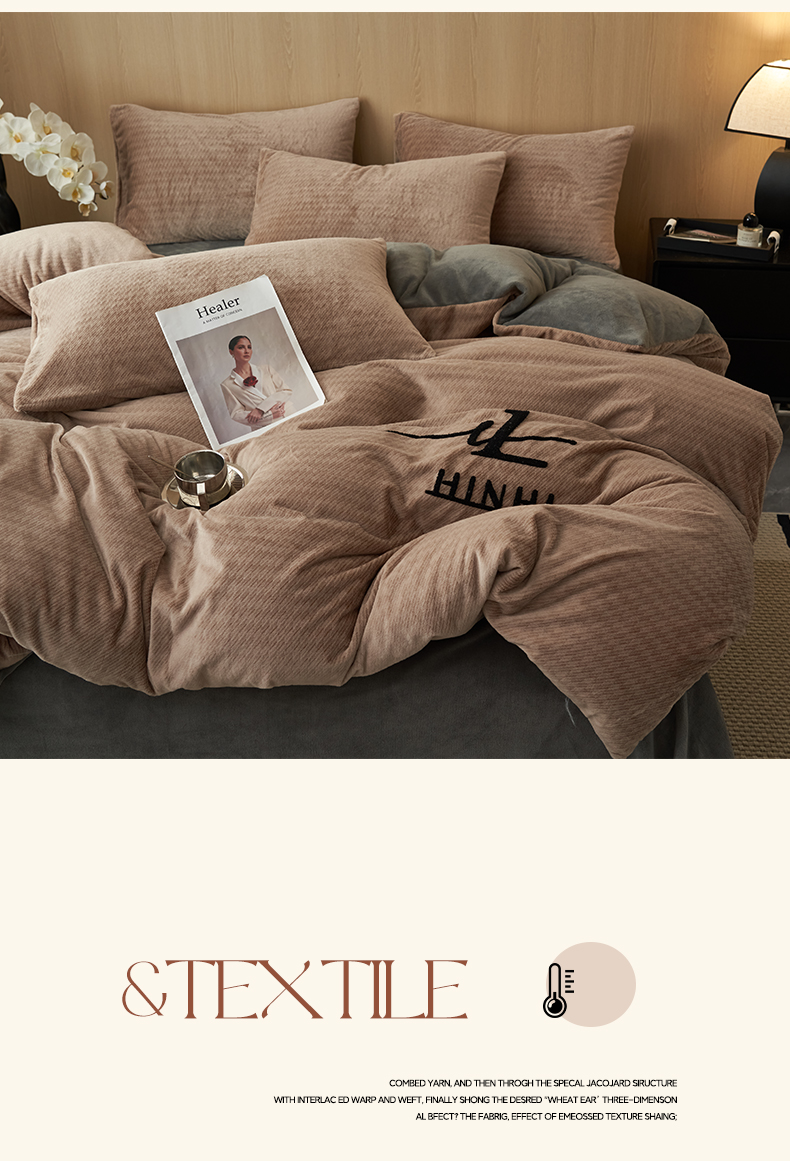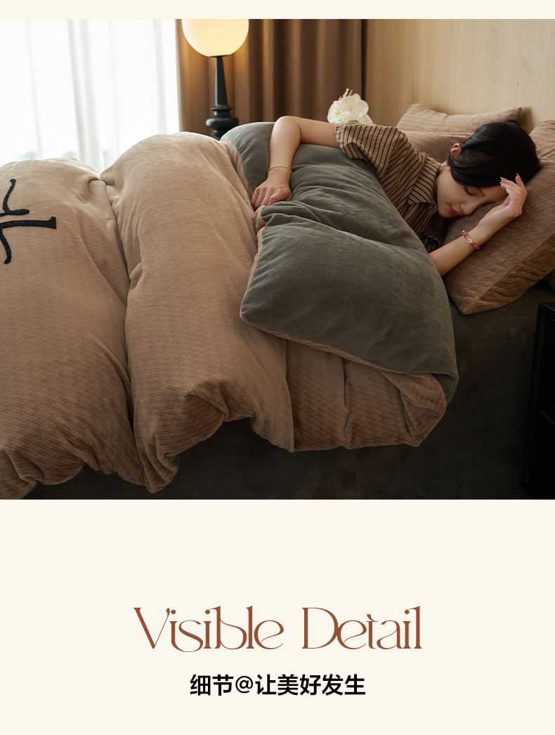 商品名称:早晨家纺 2025新款流星款阳离子提花兔毛牛奶绒四件套 流星-奶茶咖