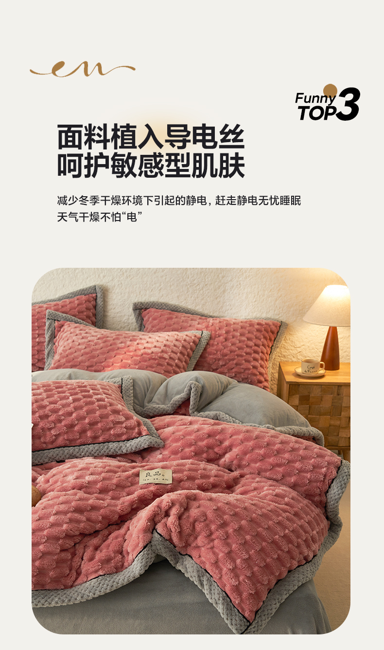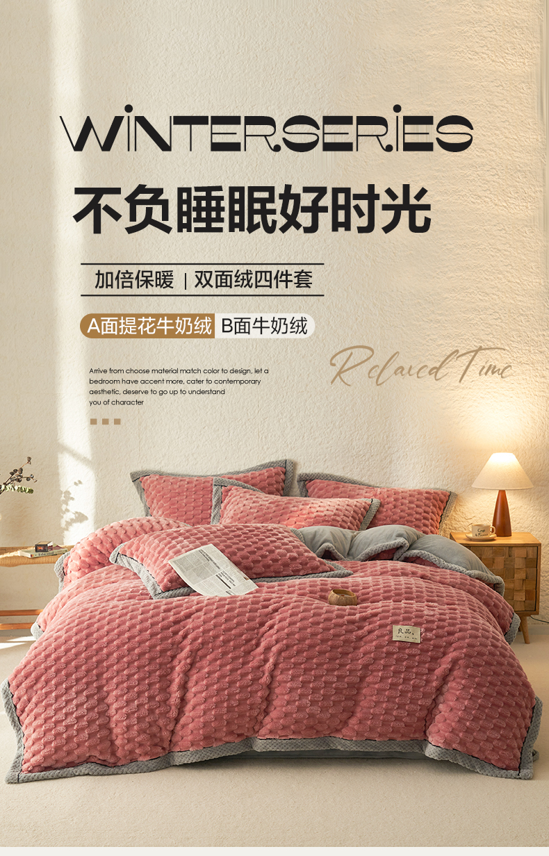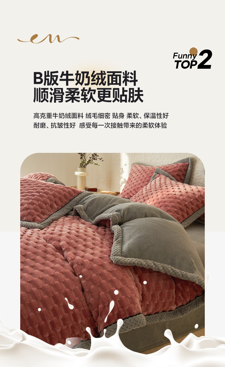 商品名称:早晨家纺 2025新款金贵款牛奶绒提花四件套 金贵-豆沙