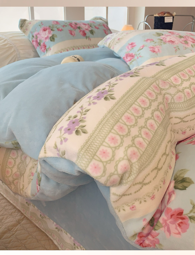 莱豫家纺 2025新款加厚牛奶绒三件套四件套保暖不静电 蓝色梦境