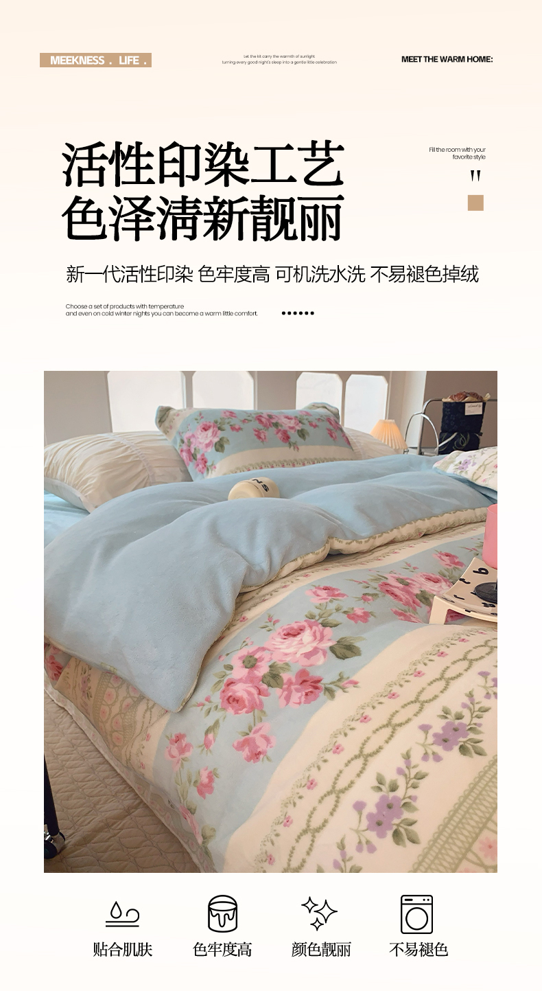 商品名称:莱豫家纺 2025新款加厚牛奶绒三件套四件套保暖不静电 蓝色梦境