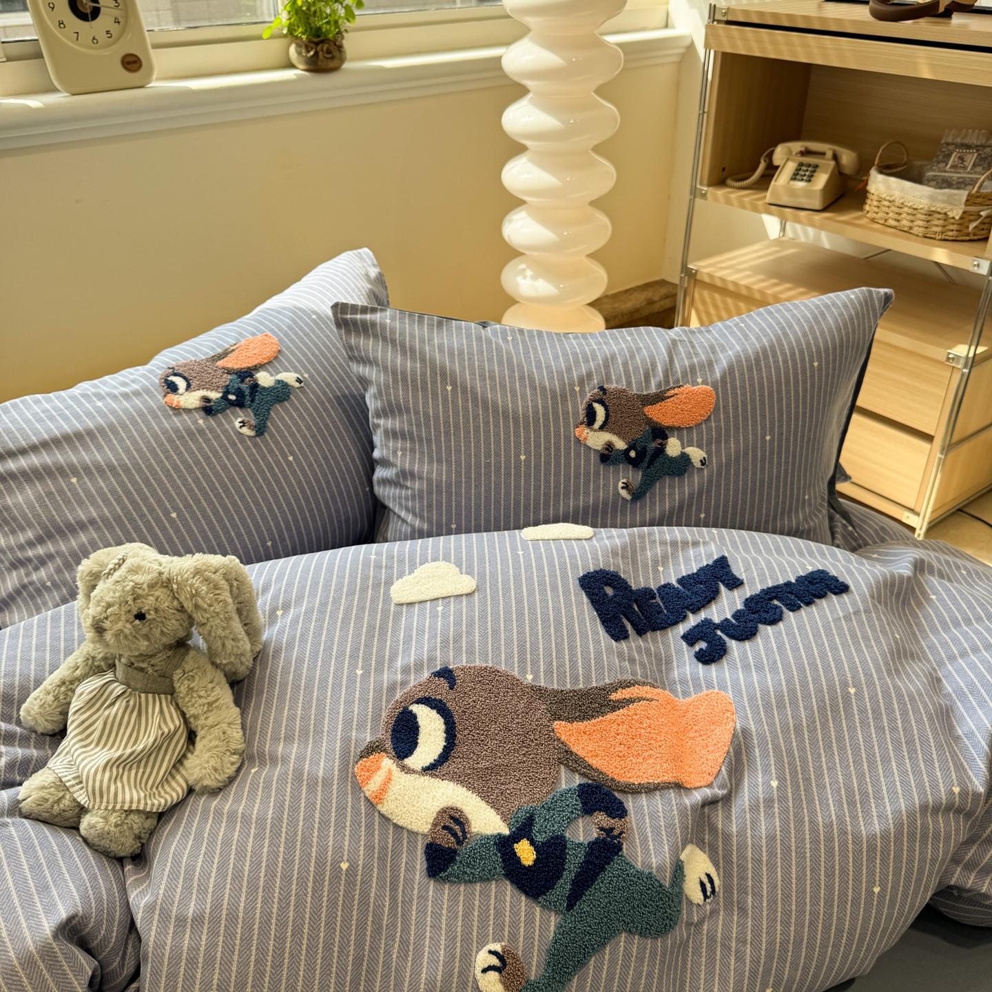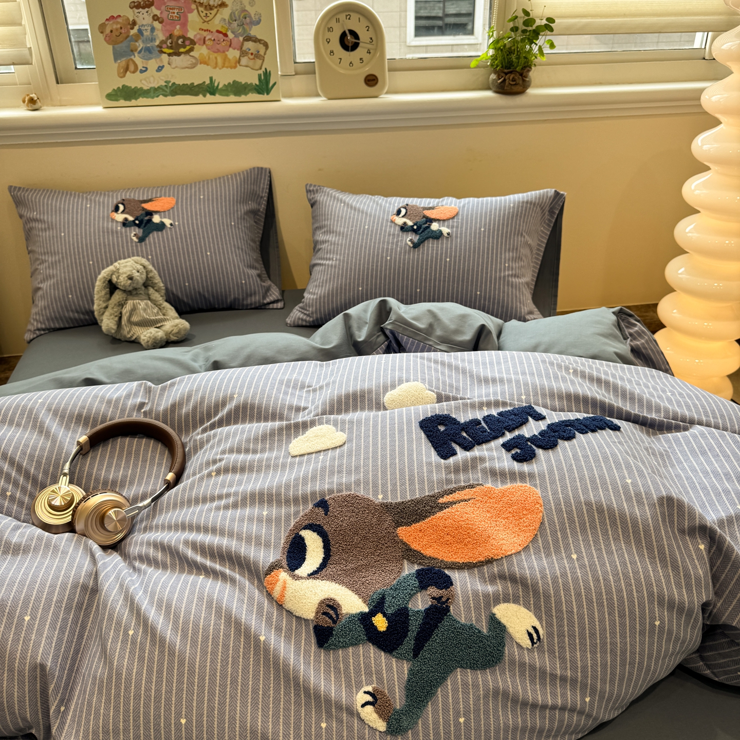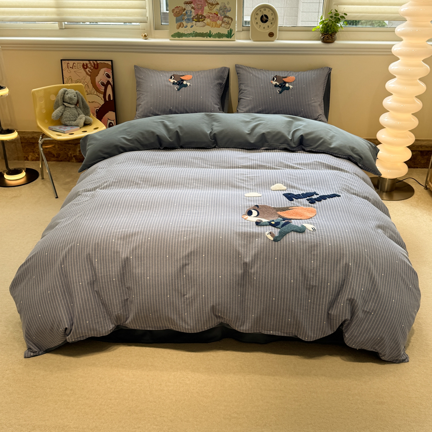 当前位置: 91家纺网 > 商品网购 > 床品套件 > 四件套 > 普通磨毛四件套 > 慕尚家纺 2025新款全棉磨毛毛巾绣四件套 奔跑兔
