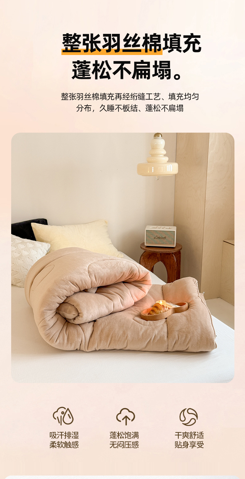 申龙家纺 2025新款牛奶绒冬被 卡其
