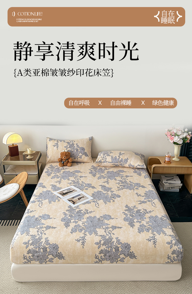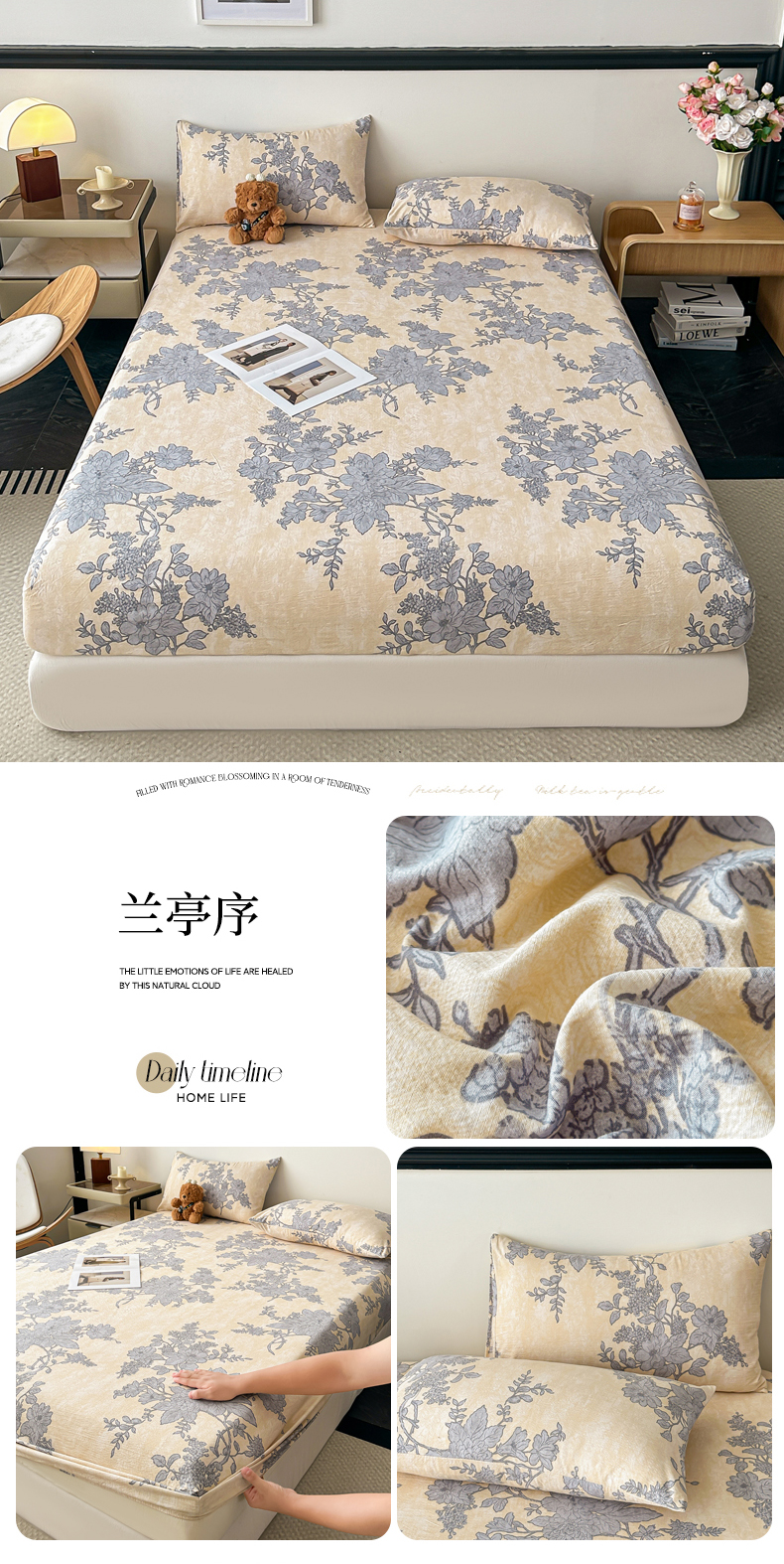 (总)梦嘉居 2025新款加厚亚麻皱皱纱加棉床笠单品床笠枕套单件单床笠,蝶恋花,花之语,扶桑花,花香韵,兰亭序,云水谣,风铃草,繁花梦,水云间,组合图