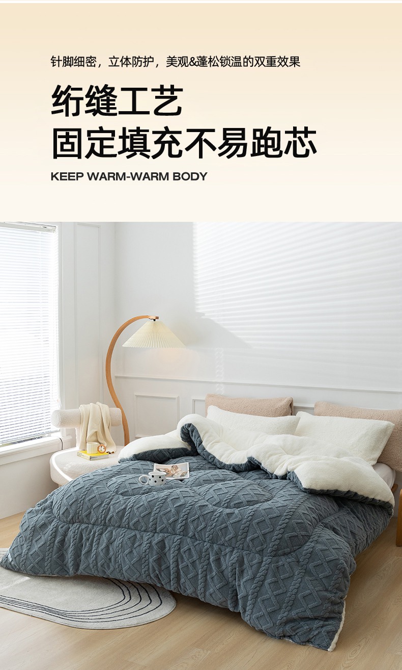 当前位置: 91家纺网 > 商品网购 > 被子 > 冬被 > 悦织湾家纺 2025暖绒冬季被子A面雪花绒牛奶绒塔芙绒B面羊羔绒加厚速暖2025新款跨境出口外贸电商热销款可定做 塔芙绒被子米卡其