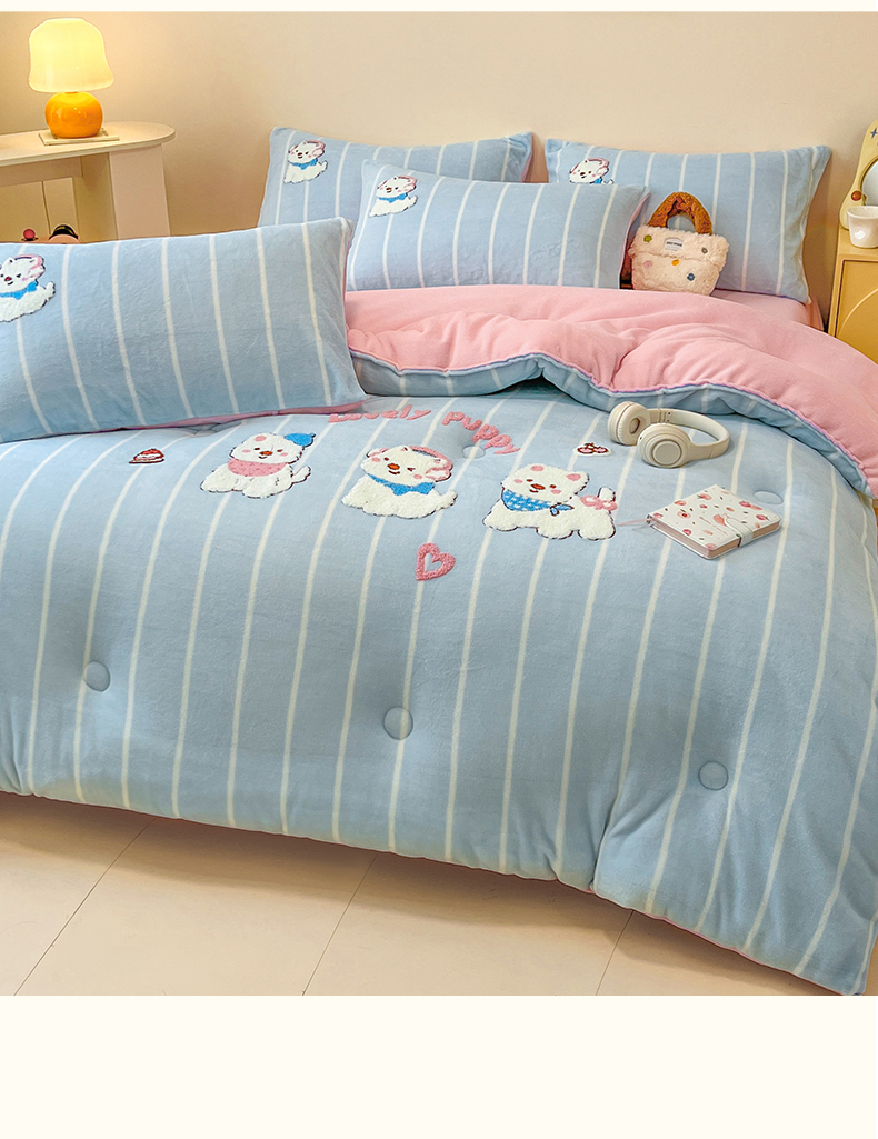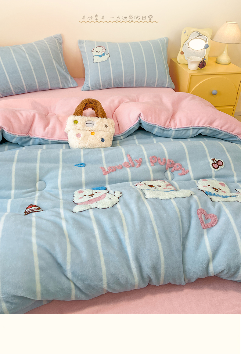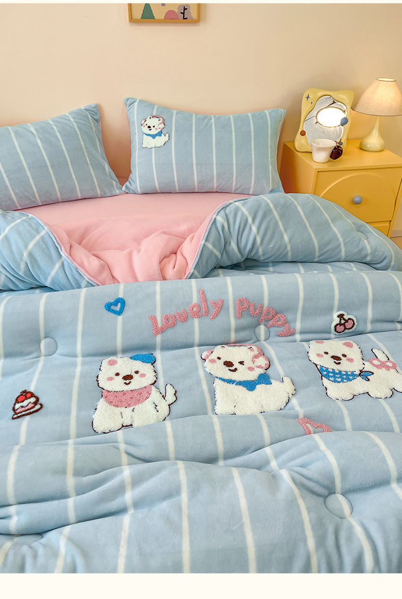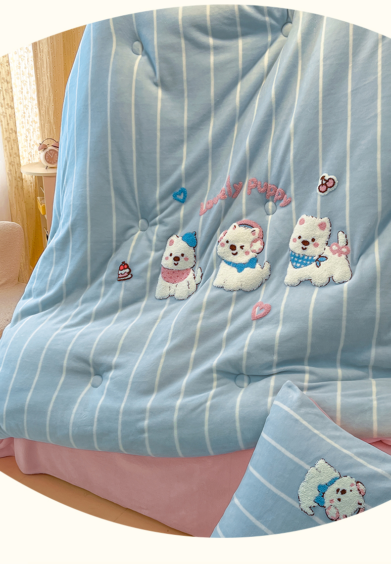 商品名称:换种生活 2025新款A类牛奶绒毛巾绣冬被被子被芯 萌萌犬