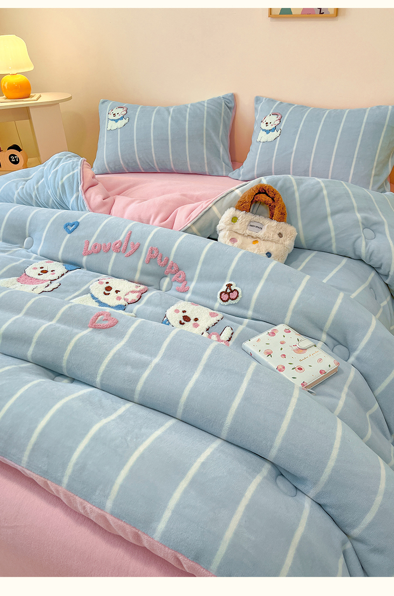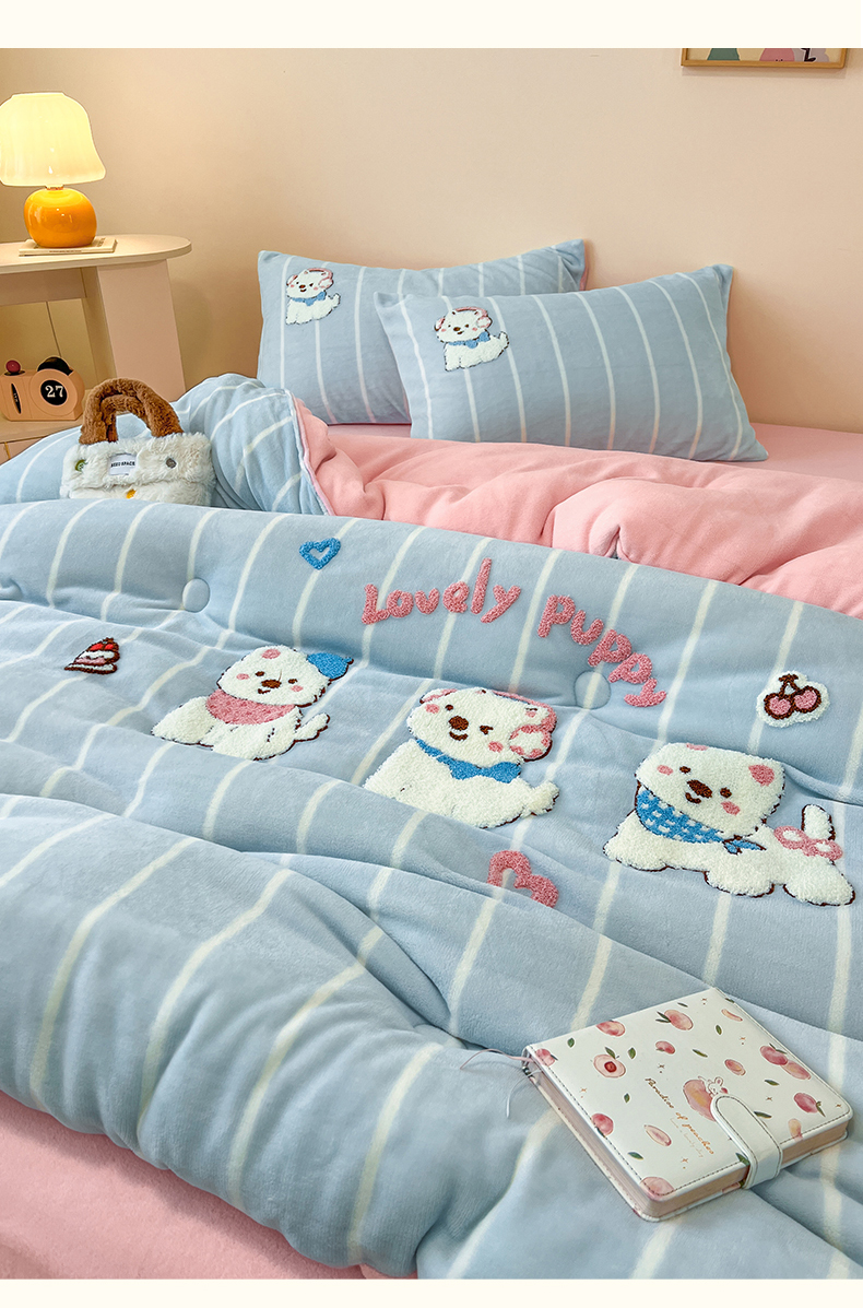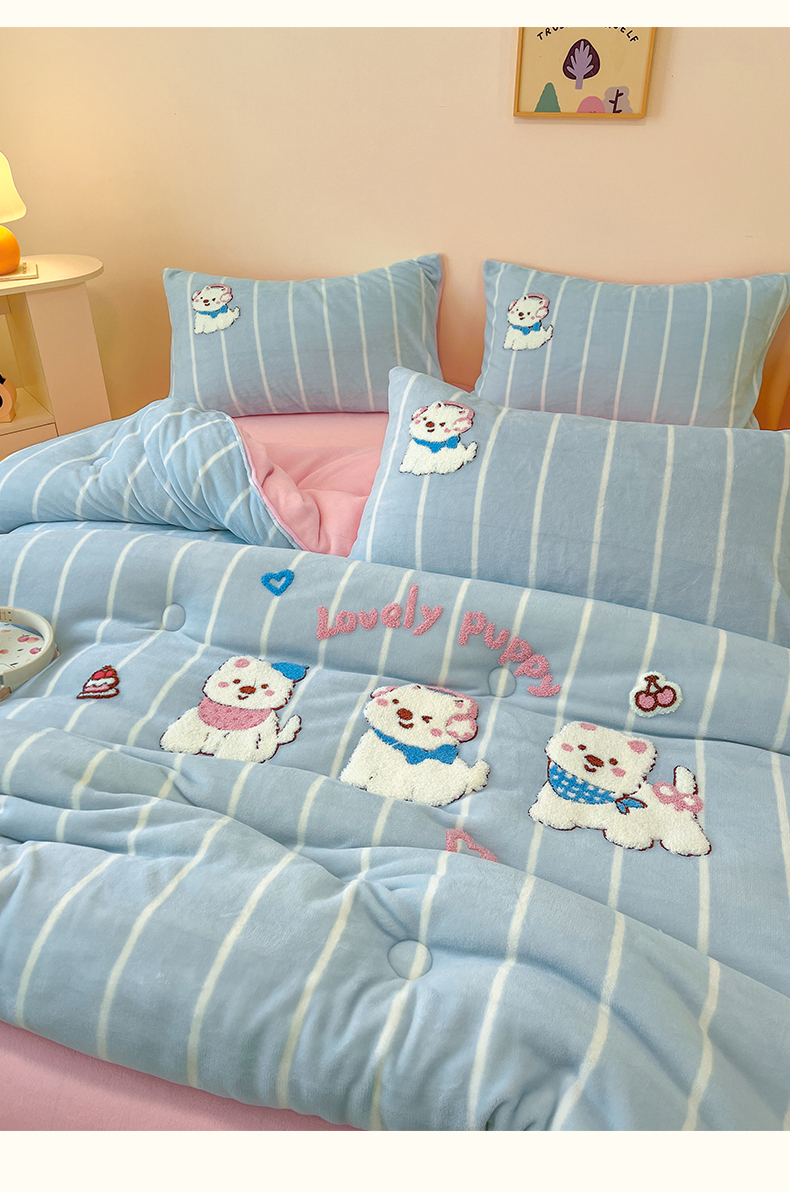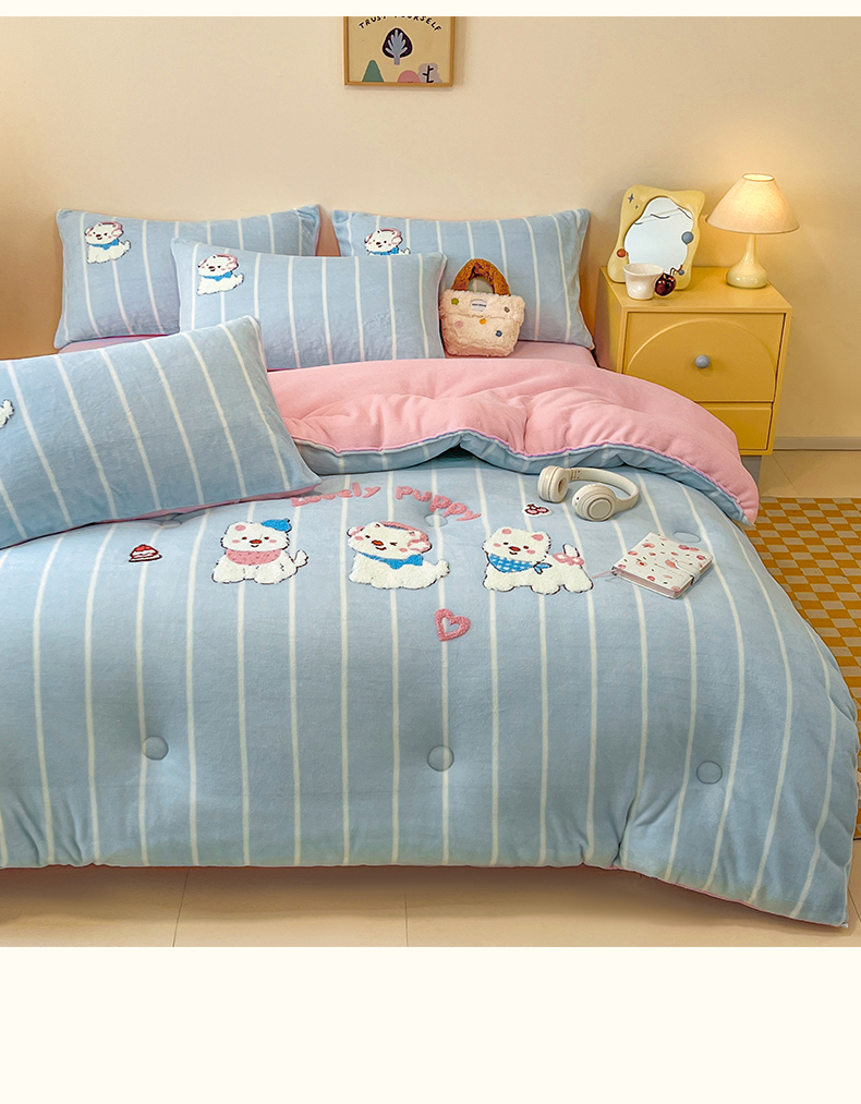 商品名称:换种生活 2025新款A类牛奶绒毛巾绣冬被被子被芯 萌萌犬