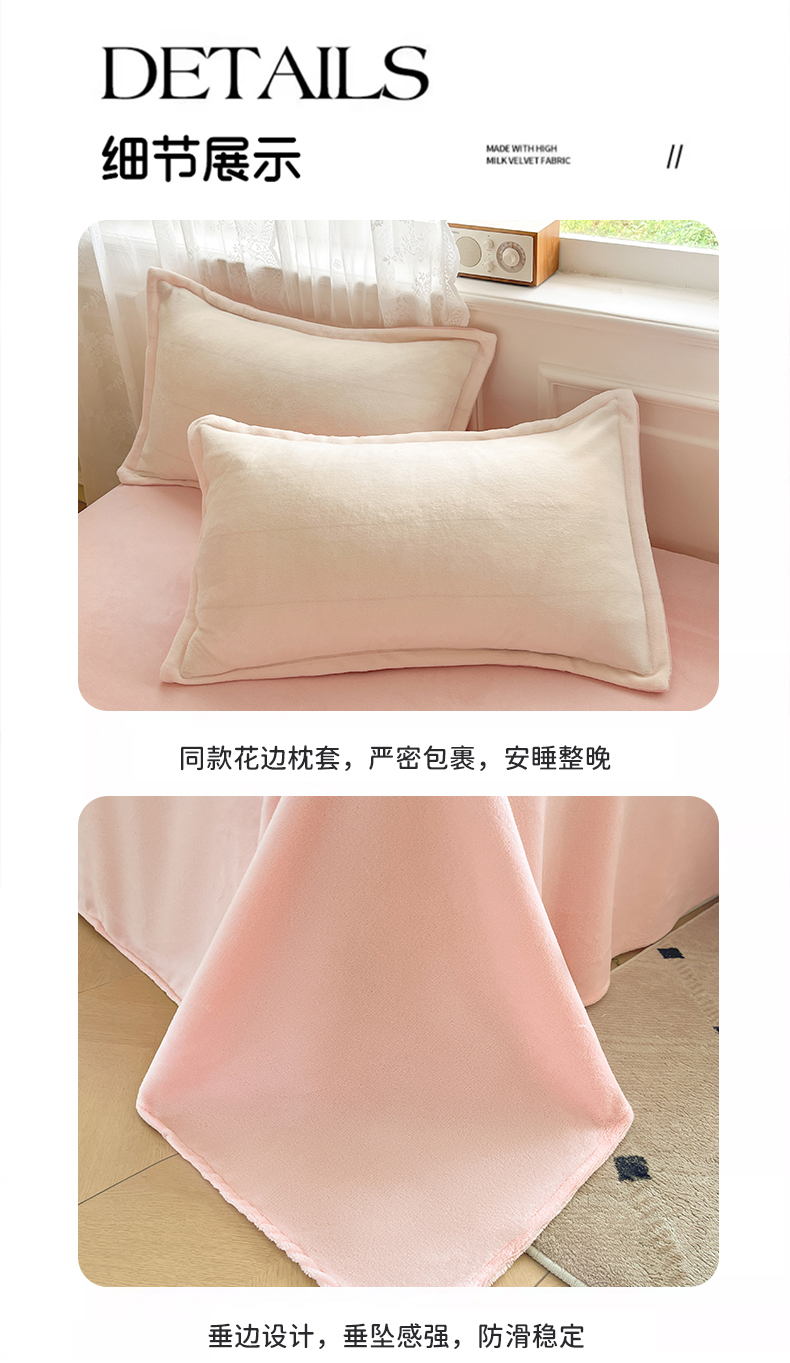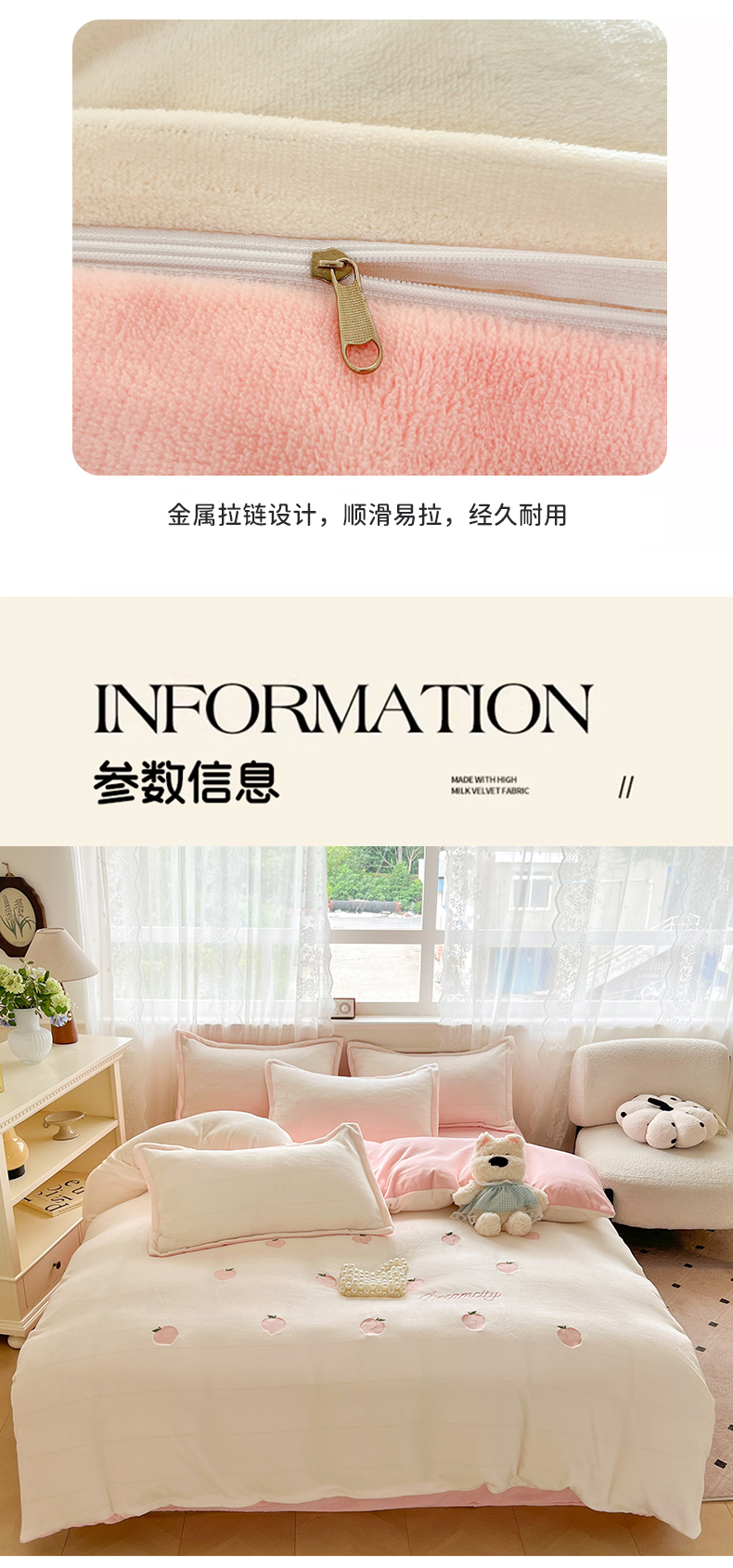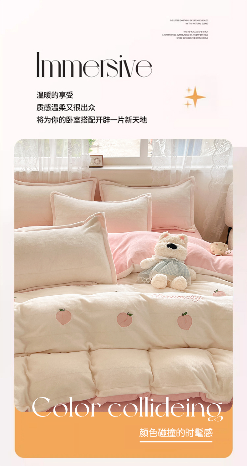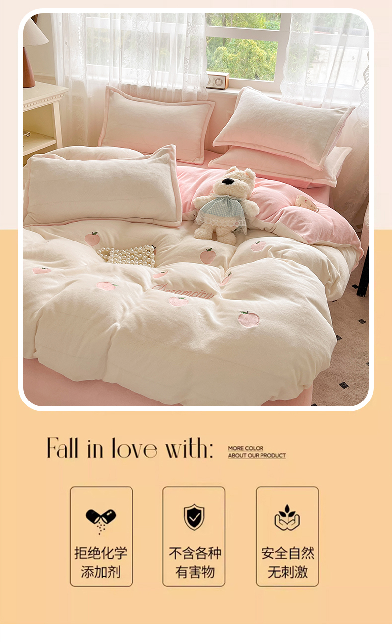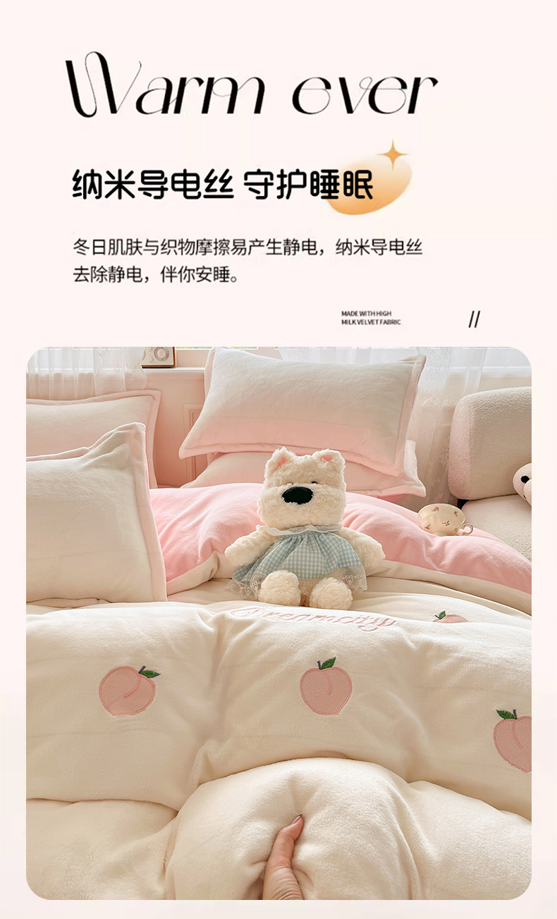 商品名称:伊梵居2025新款加厚贴布绣牛奶绒四件套 桃子-奶白粉