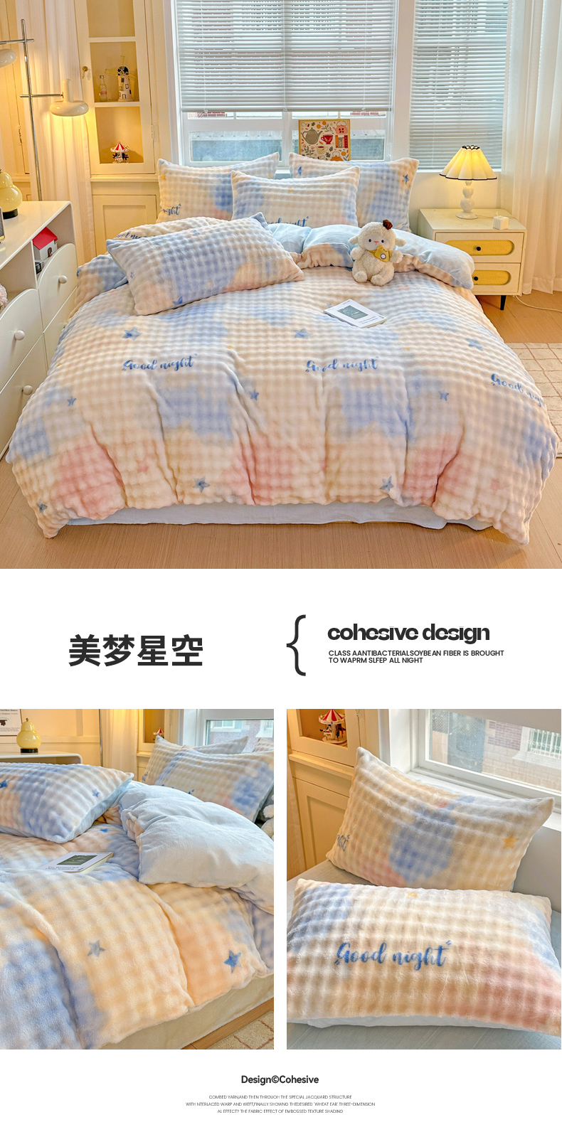 当前位置: 91家纺网 > 商品网购 > 床品套件 > 四件套 > 牛奶绒四件套 > N先生+V 13814689556 发大图/买家秀 2025新款260克高克重泡泡绒牛奶绒四件套 美梦星空
