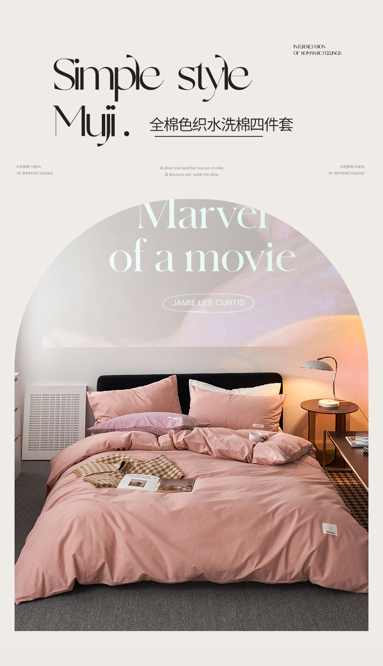 当前位置: 91家纺网 > 商品网购 > 床品套件 > 四件套 > 全棉普通四件套 > 蓝邻家纺 2025新款A类全棉纯棉水洗棉纯色贴标系列四件套-风格一 公主粉