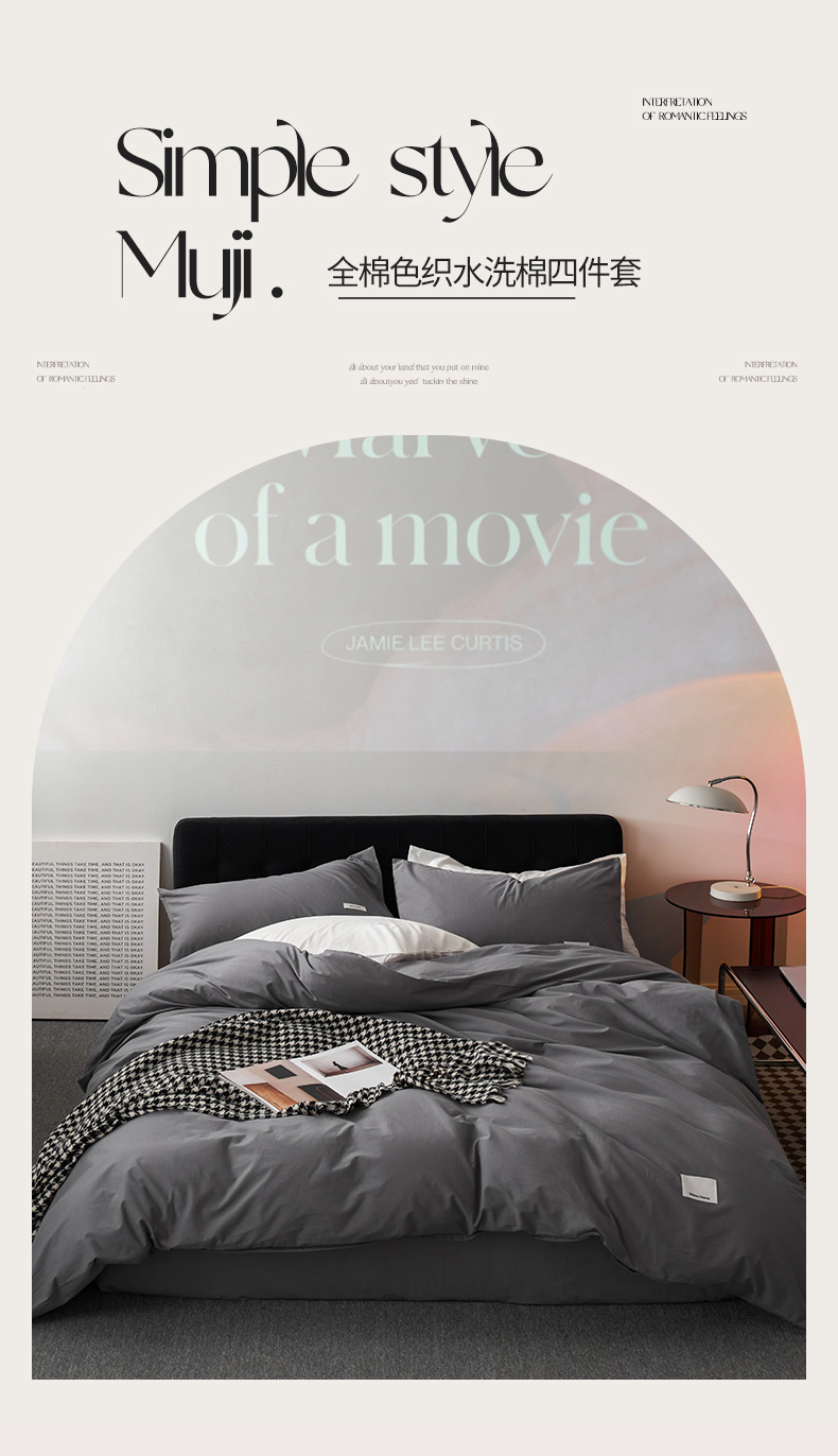 当前位置: 91家纺网 > 商品网购 > 床品套件 > 四件套 > 全棉普通四件套 > 蓝邻家纺 2025新款A类全棉纯棉水洗棉纯色贴标系列四件套-风格一 星辰灰