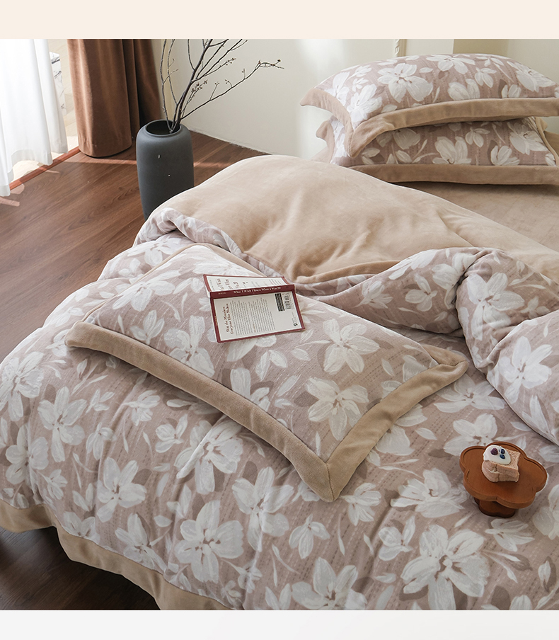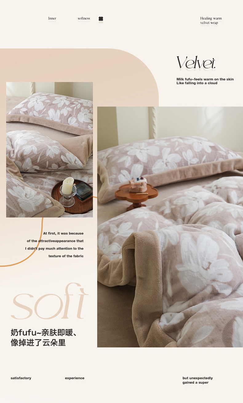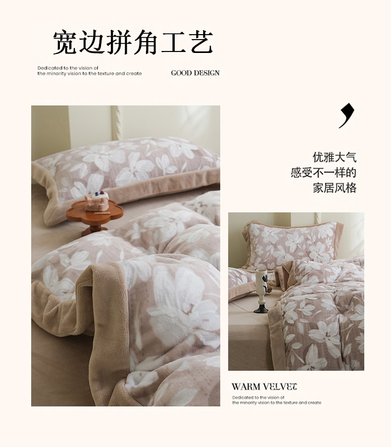米奈家居 2025新款立体雕花拼角款牛奶绒四件套 花如玉-驼