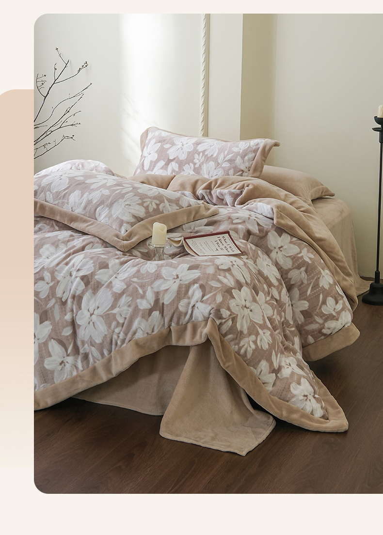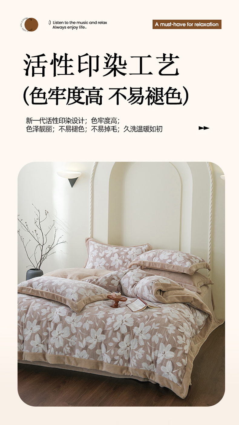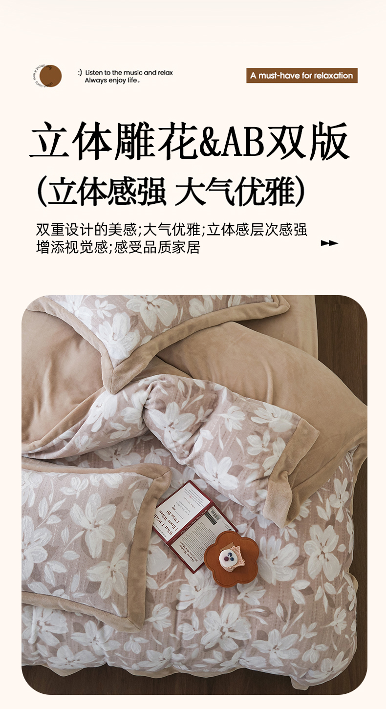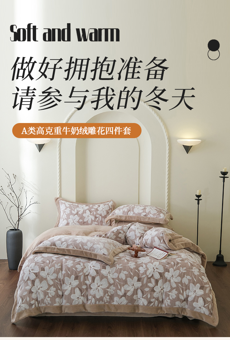 (总)米奈家居 2024新款A类牛奶雕花绒四件套-瑞丽,巴赫(卡其),巴赫(紫粉),花漾(淡雅粉),花漾(香槟),水墨(豆沙),水墨(卡其),邂逅(咖色),邂逅(绿色)