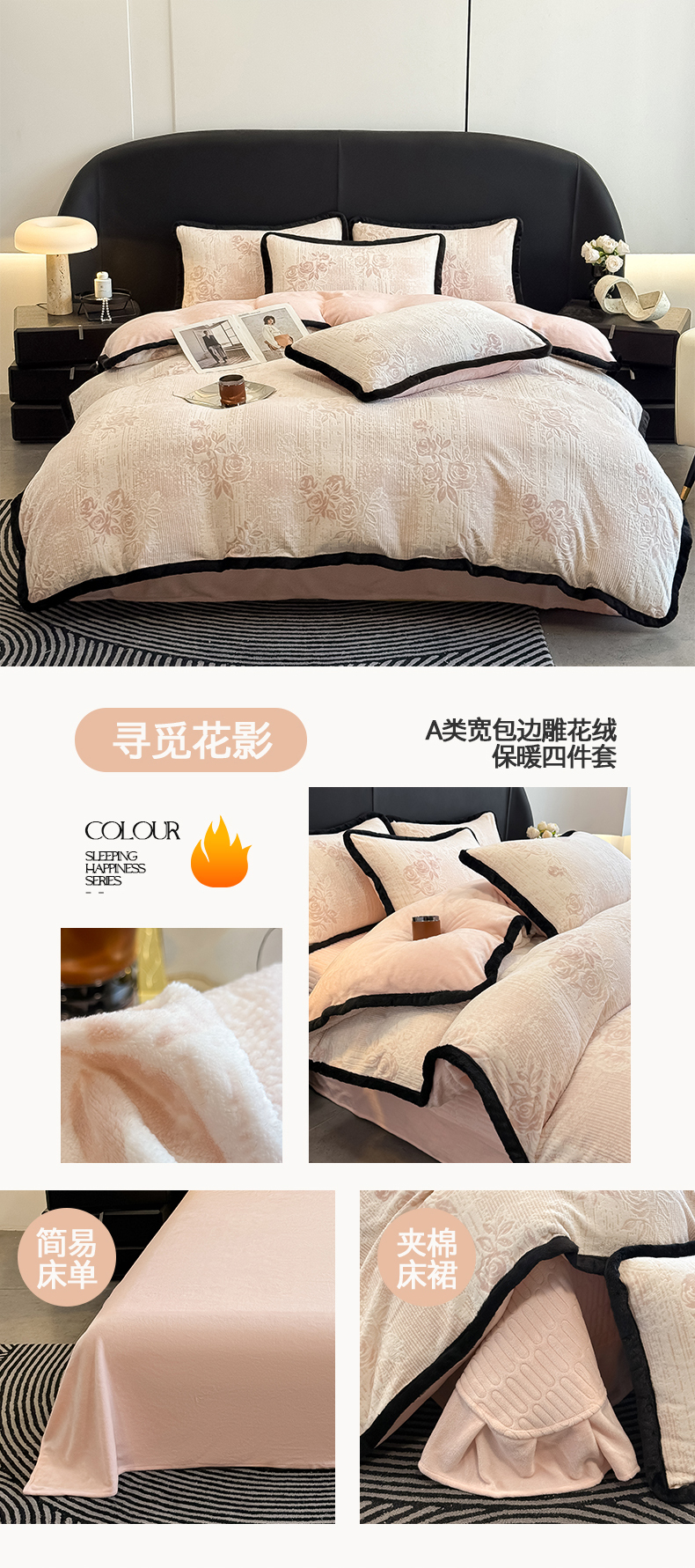 当前位置: 91家纺网 > 商品网购 > 床品套件 > 四件套 > 雕花绒四件套 > 典曼家纺 2025新款A类宽包边雕花绒四件套 蝴蝶花海