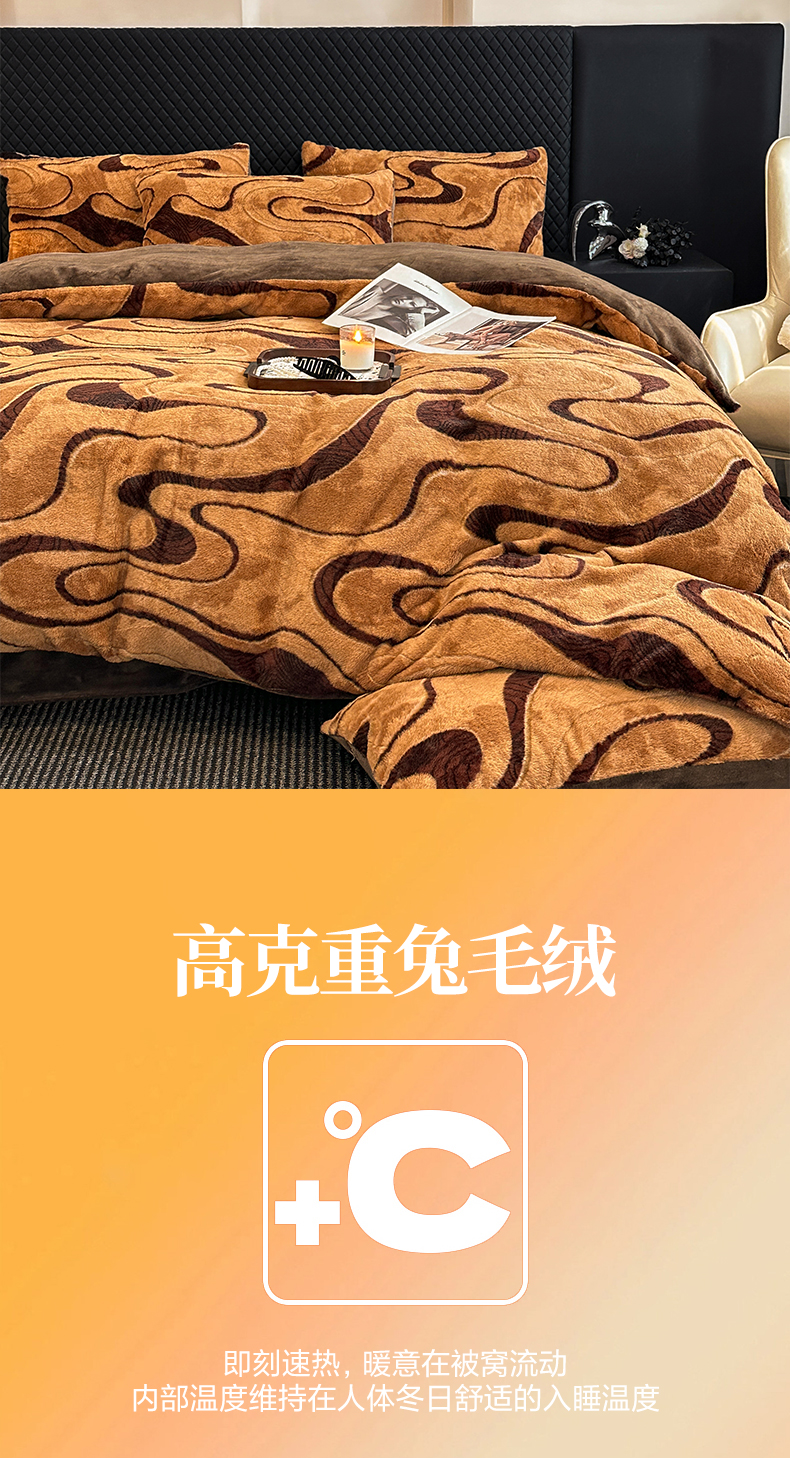 商品名称:民新家纺 2025新款兔毛绒印花简约款四件套 简约款-赫本