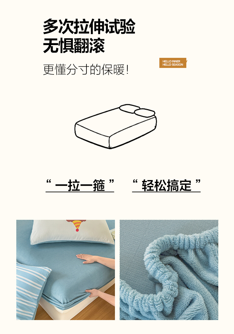 (总)十一家居 2025新款A类磨毛夹棉床笠,浅蓝,浅灰,卡其,本白
