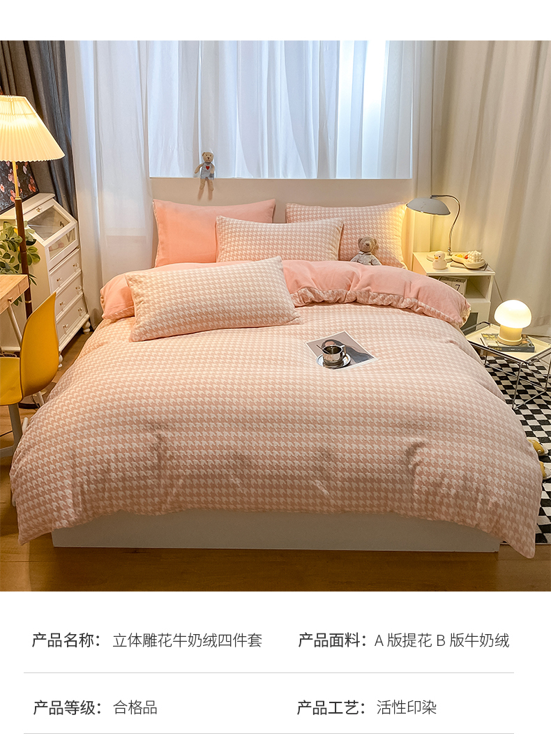 当前位置: 91家纺网 > 商品网购 > 床品套件 > 四件套 > 牛奶绒四件套 > 如一 2025新款3D雕花牛奶绒四件套 千鸟格粉