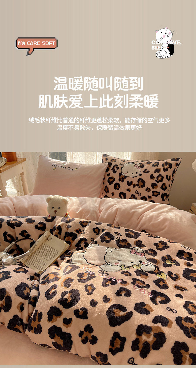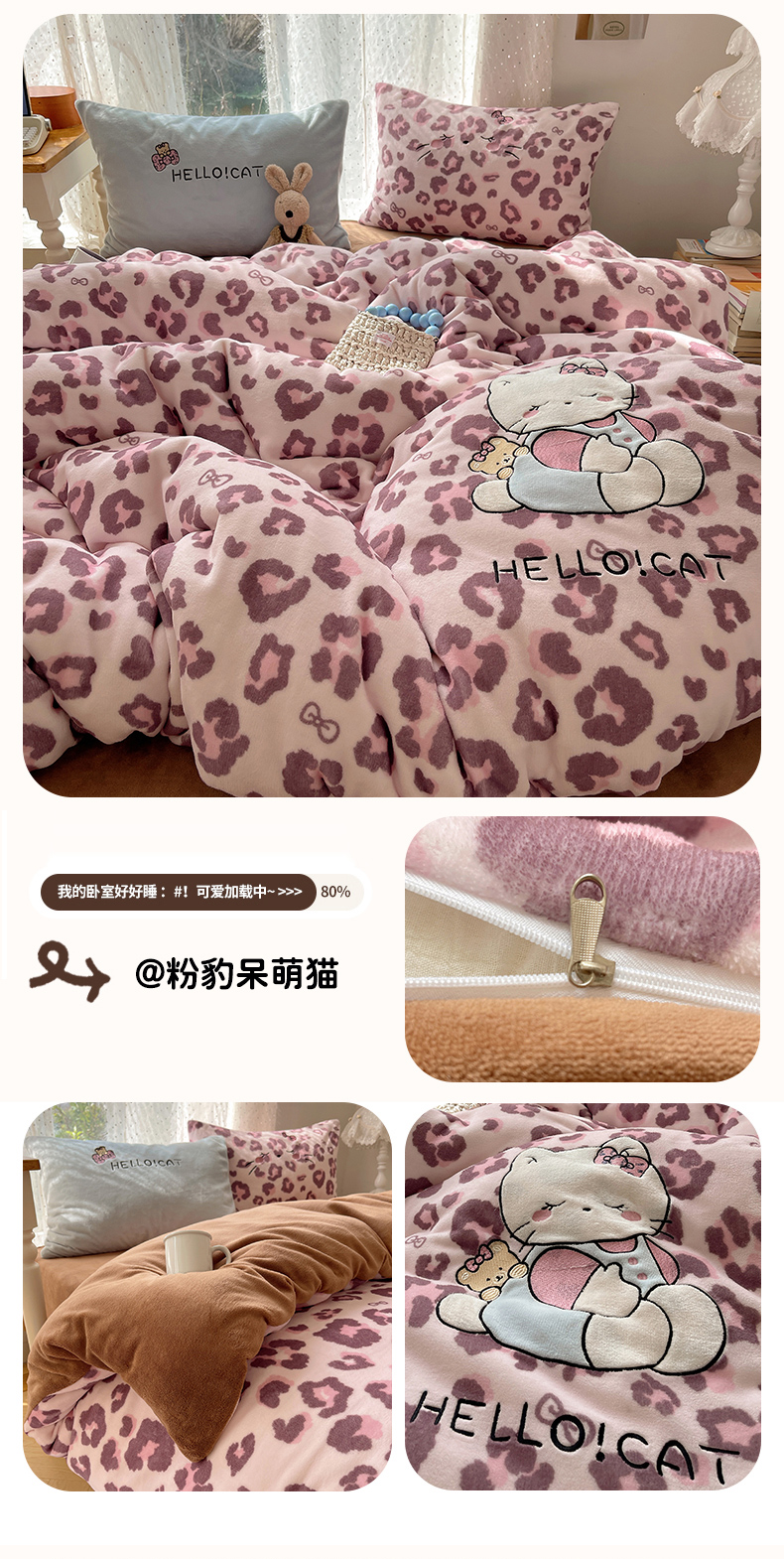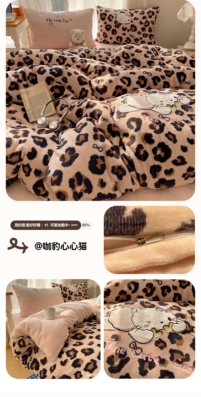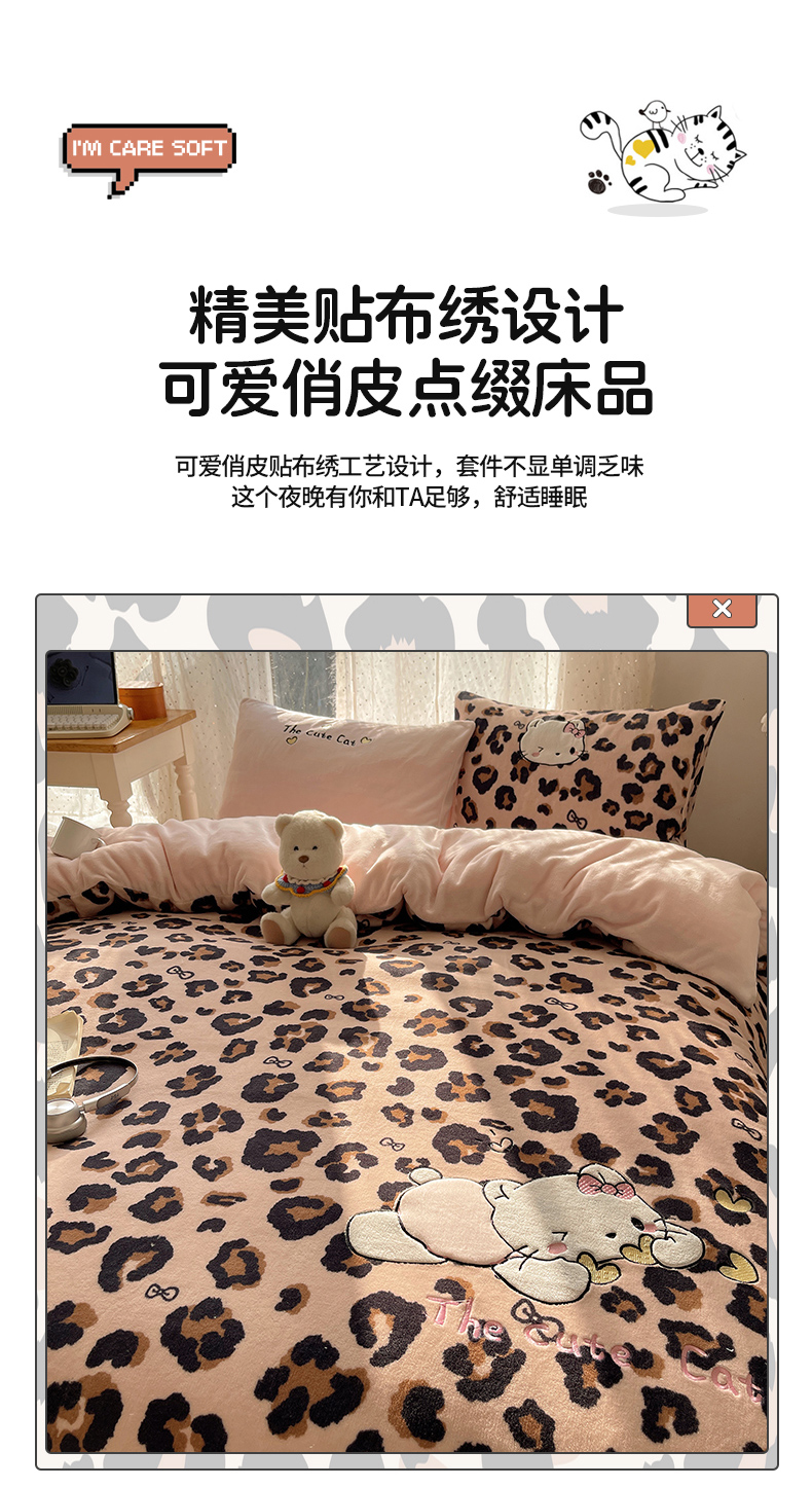 当前位置: 91家纺网 > 商品网购 > 床品套件 > 四件套 > 牛奶绒四件套 > (总)轻奢坊 2025新款牛奶绒可爱猫咪豹纹贴布绣四件套