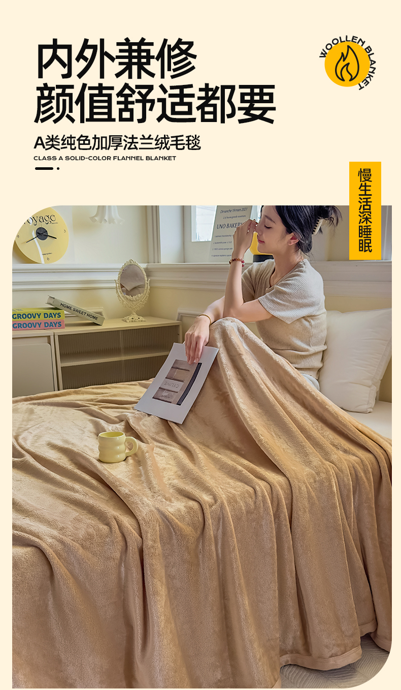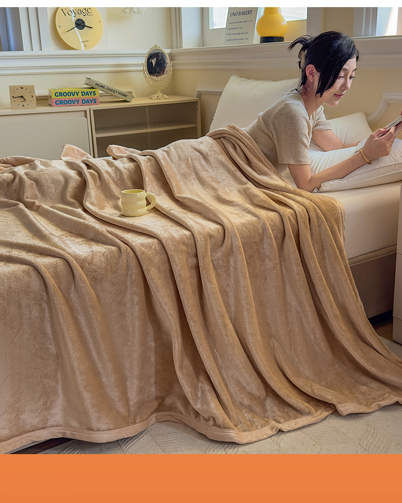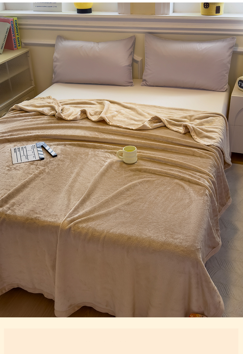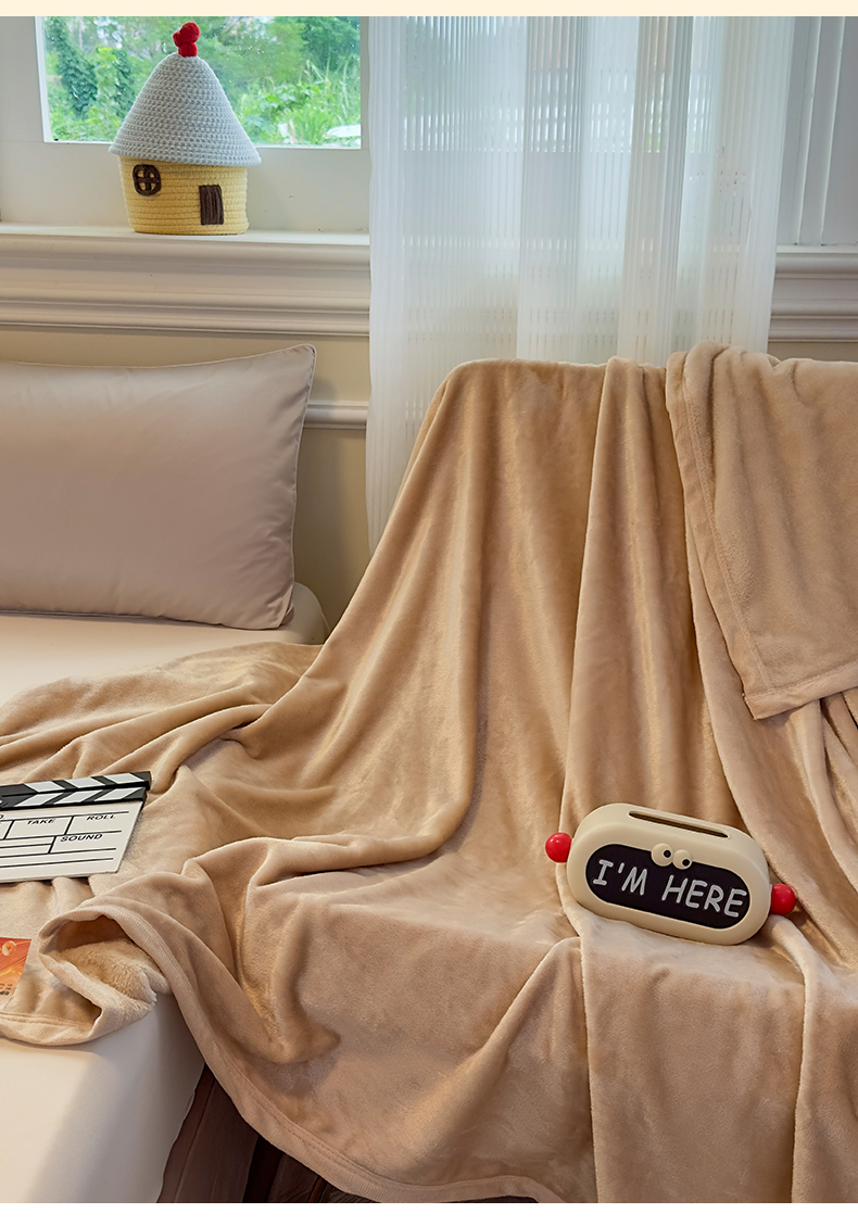 予梦家纺 2025新款320g高克重加厚法兰绒毛毯办公室午休毯 奶茶驼