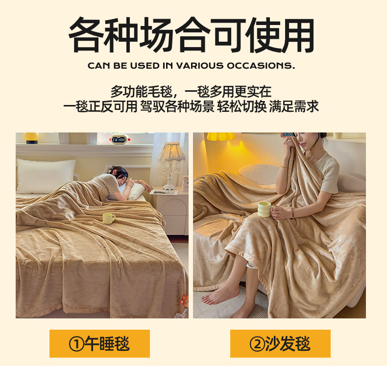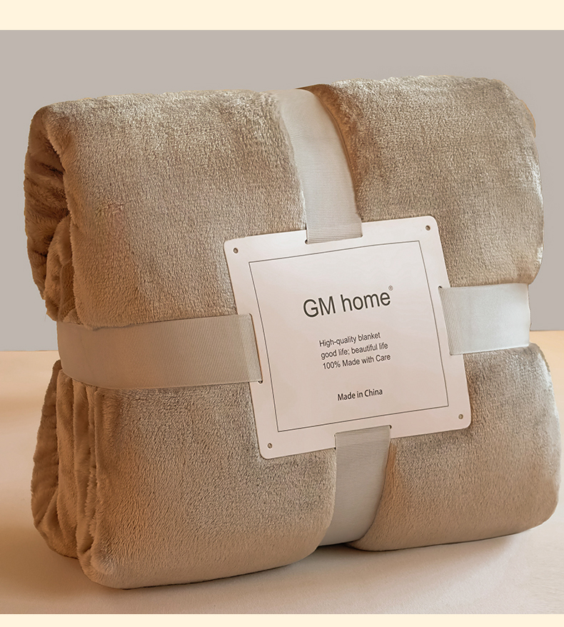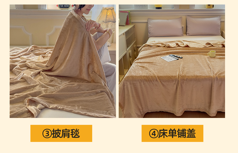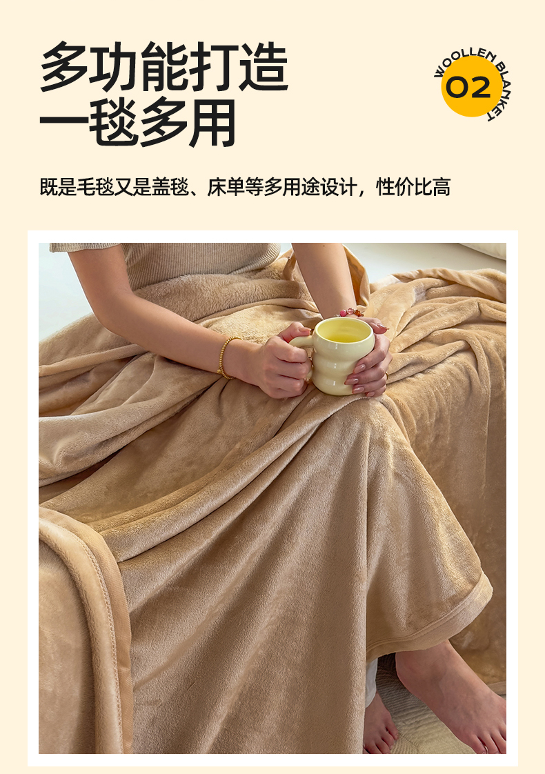 予梦家纺 2025新款320g高克重加厚法兰绒毛毯办公室午休毯 奶茶驼