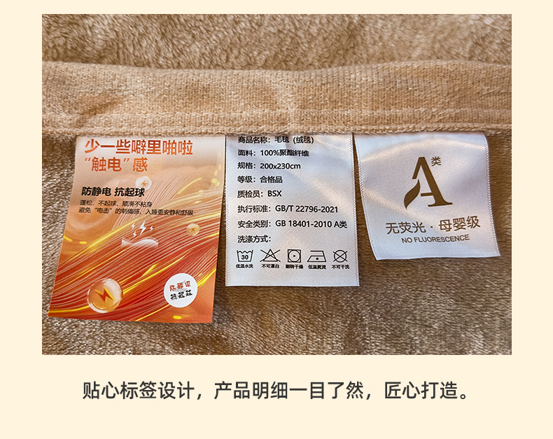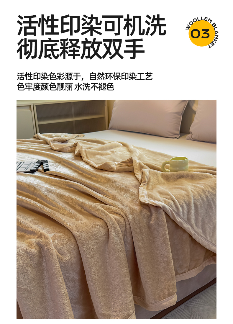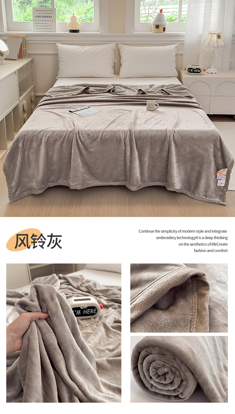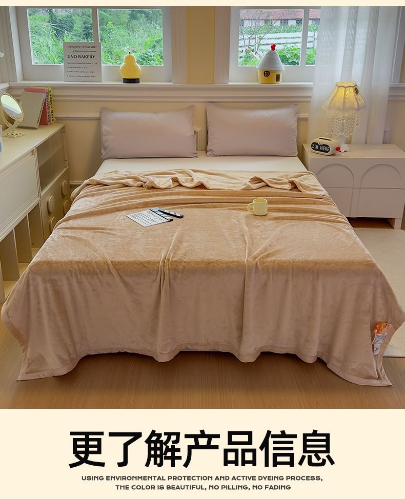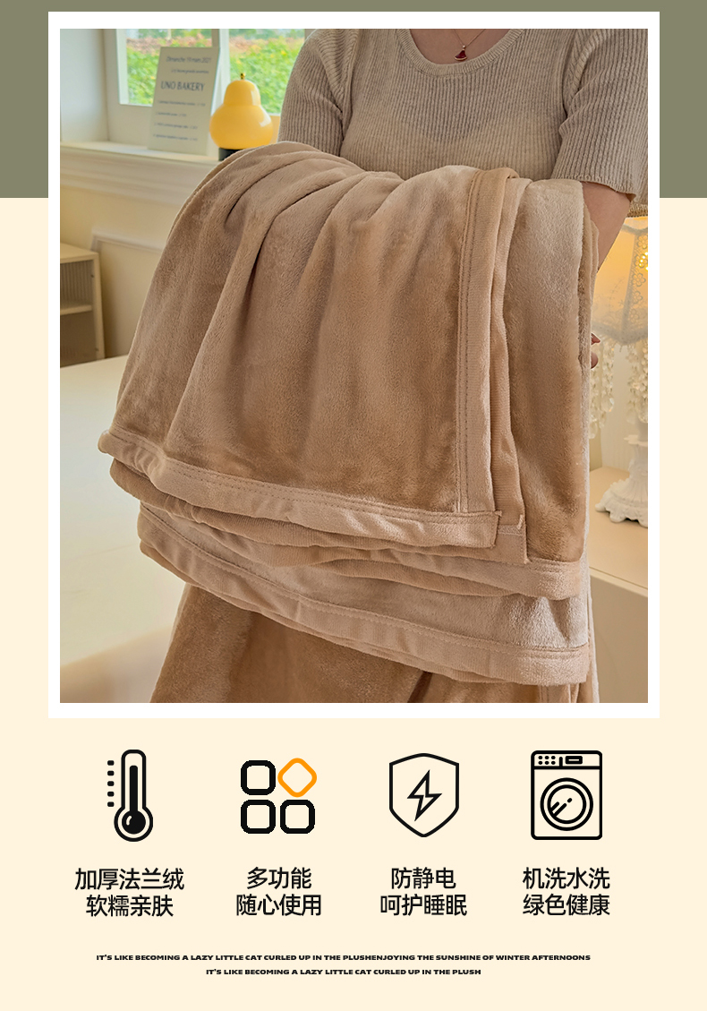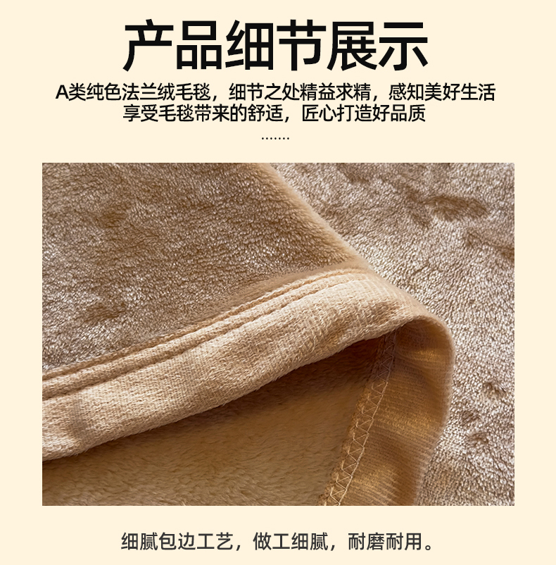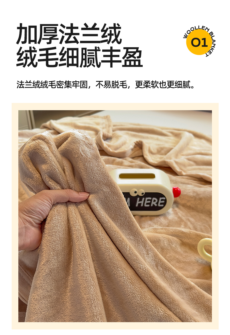 商品名称:予梦家纺 2025新款320g高克重加厚法兰绒毛毯办公室午休毯 奶茶驼