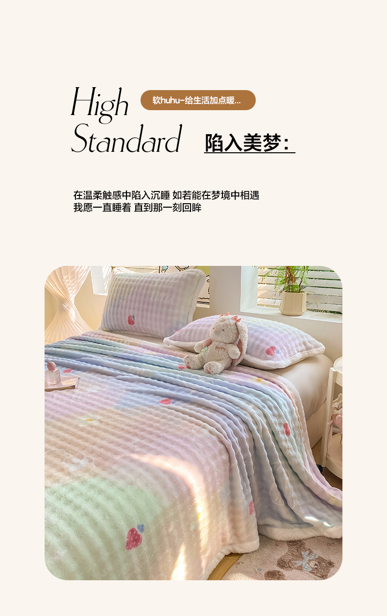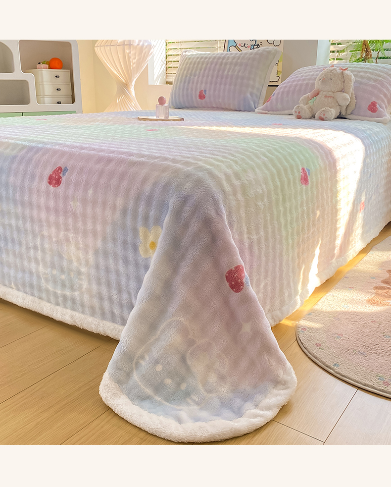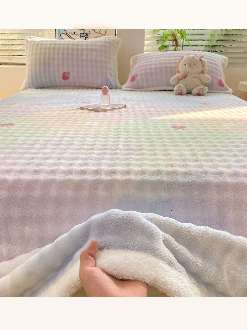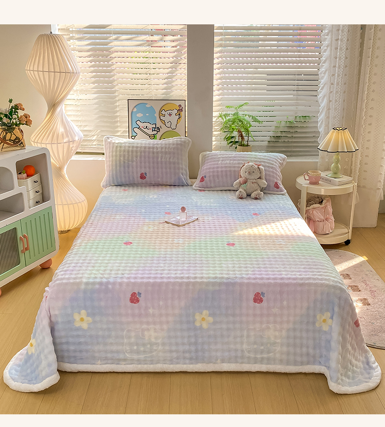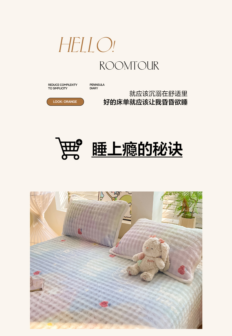 • 91家纺网 家纺一手货源 找家纺 眠势力 2025新款暖绒泡泡床单冬季保暖被单牛奶绒床单罩 草莓KT【暖绒泡泡床单】