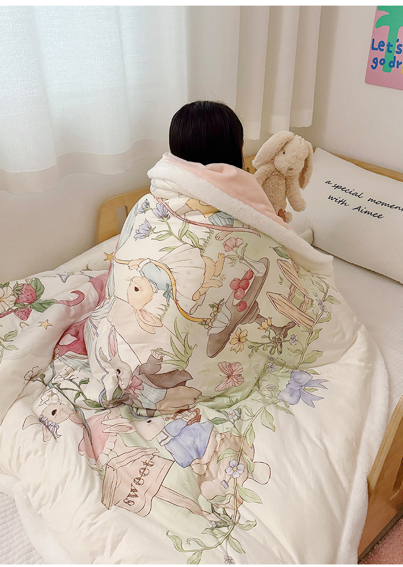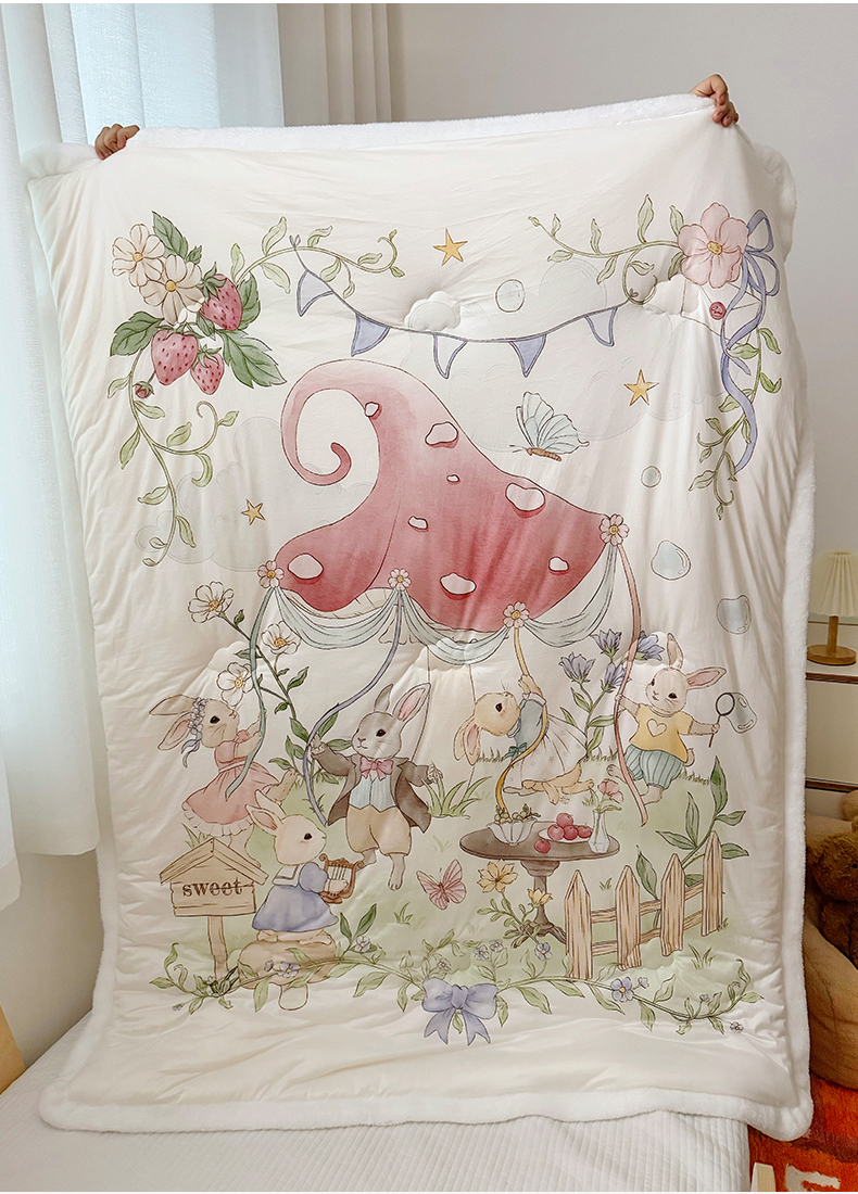 (总)荷马之梦 2025新款A类小版针织棉数码印花手绘原创豆豆绒被芯儿童被子春秋被冬被-梦境,精灵小兔,恐龙之家,跑跑小熊猫B,糖果女孩,小王子