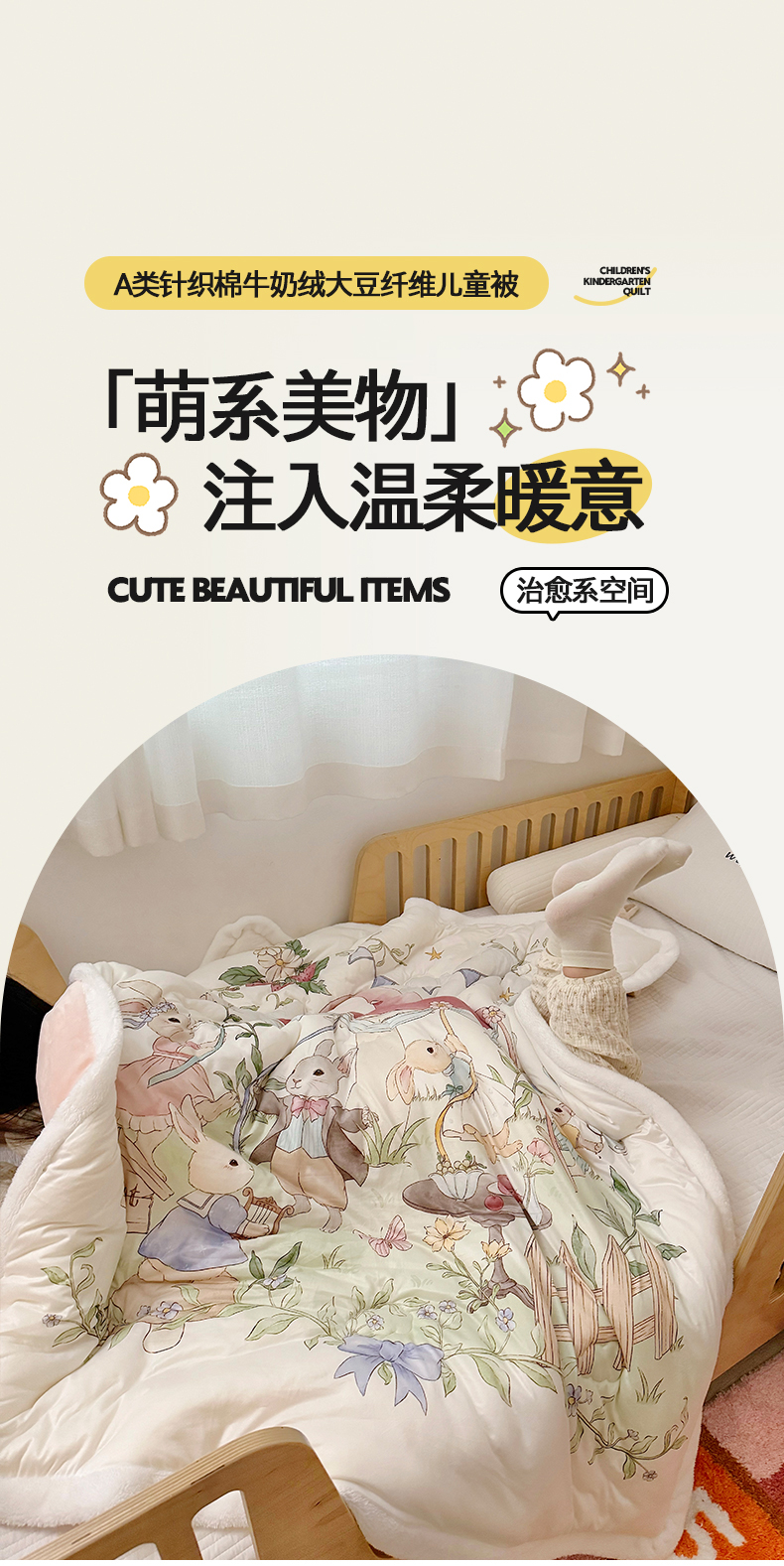 商品名称:荷马之梦 2025新款A类针织棉牛奶绒大豆纤维春秋被冬被儿童被芯幼儿园被子-奶芙系列 奶芙-仲夏节乐园