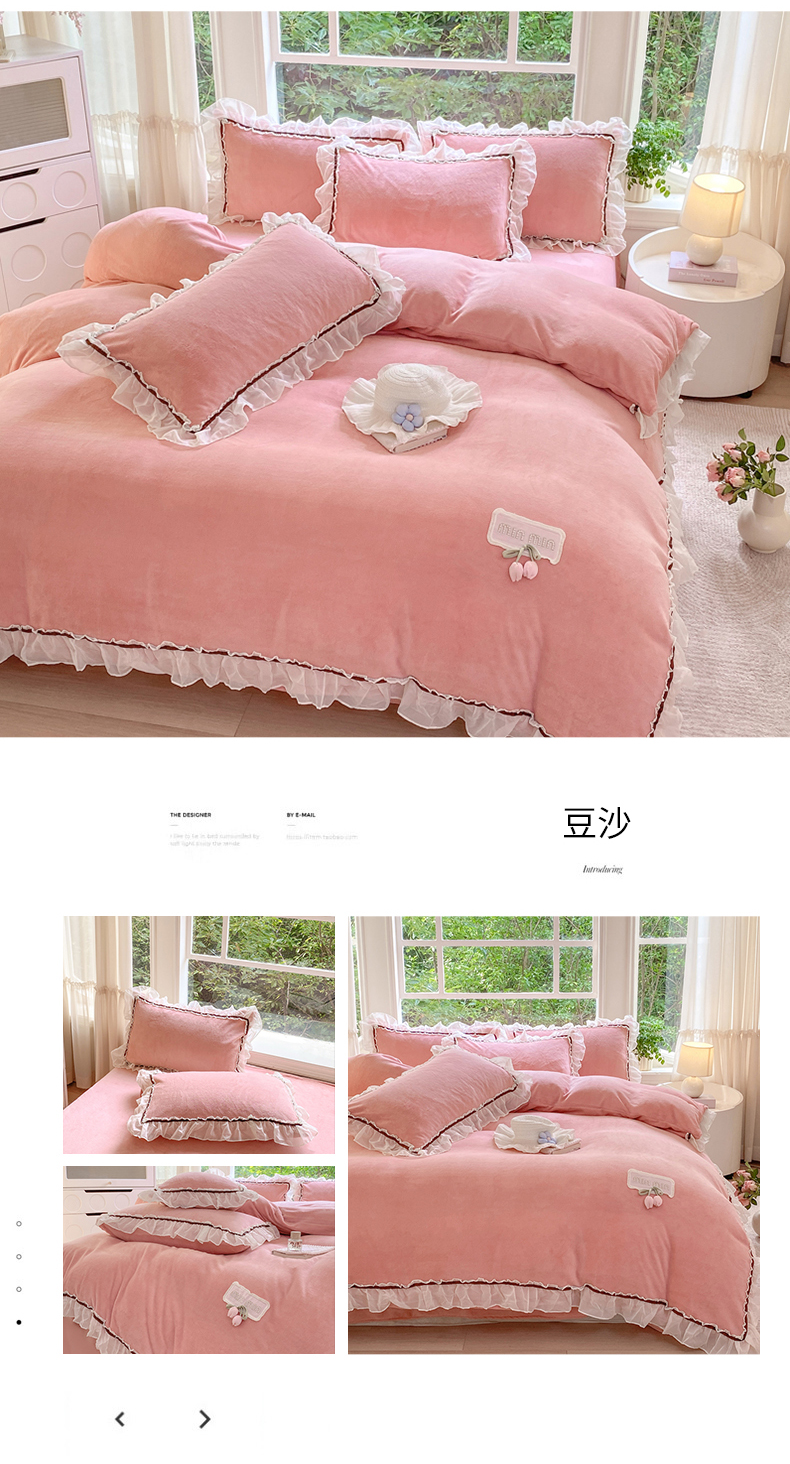 二八年华 2025新款韩式花边款牛奶绒四件套 粉玉