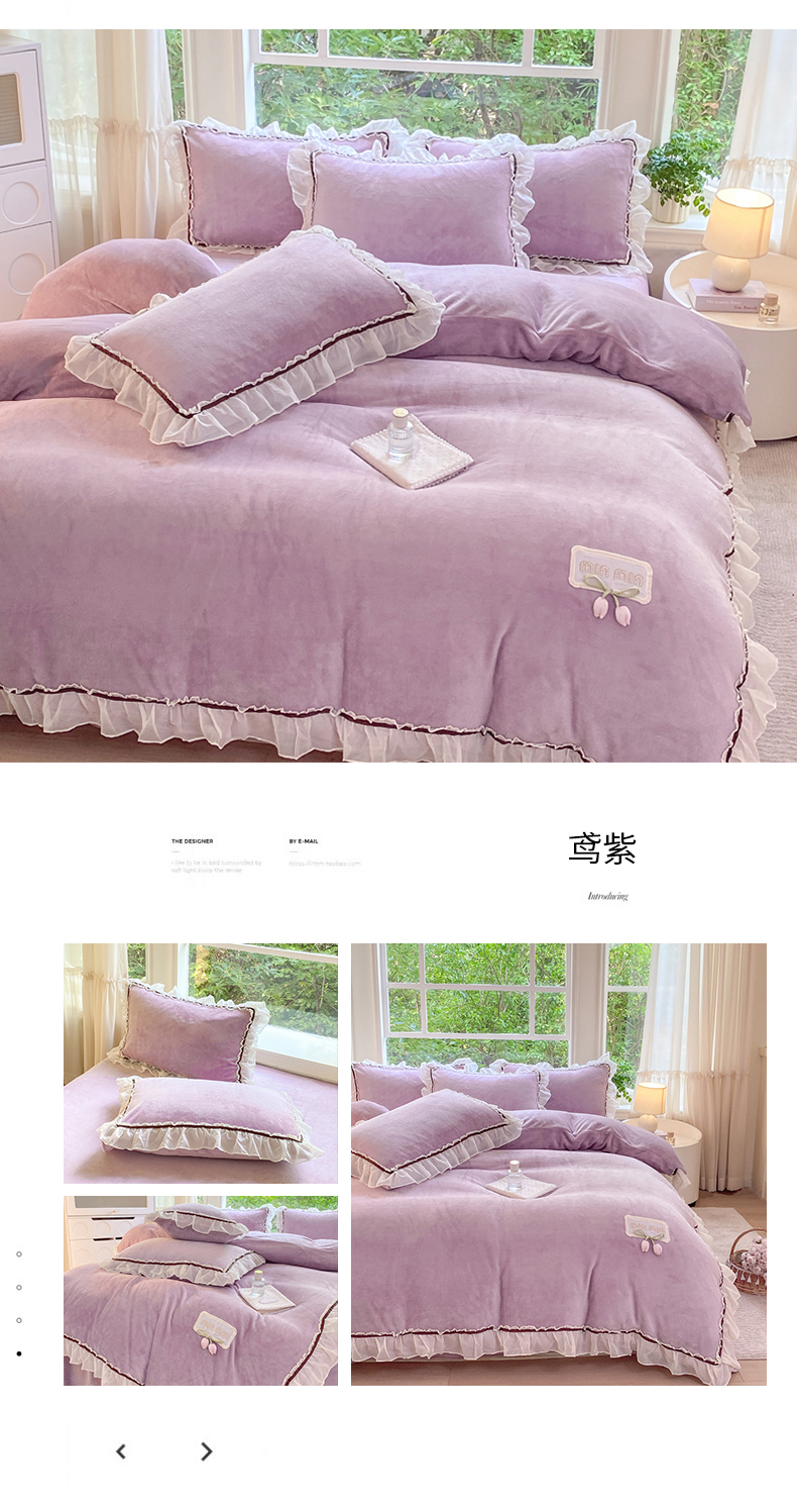 商品名称:二八年华 2025新款韩式花边款牛奶绒四件套 粉玉