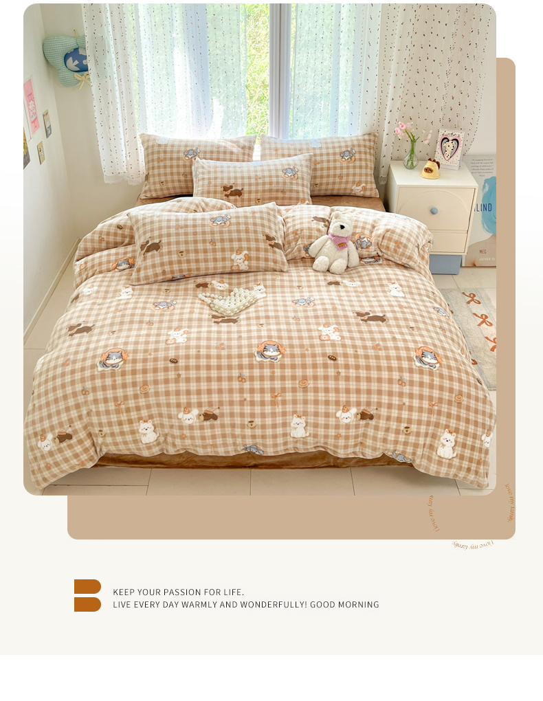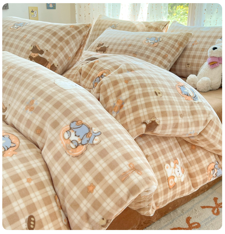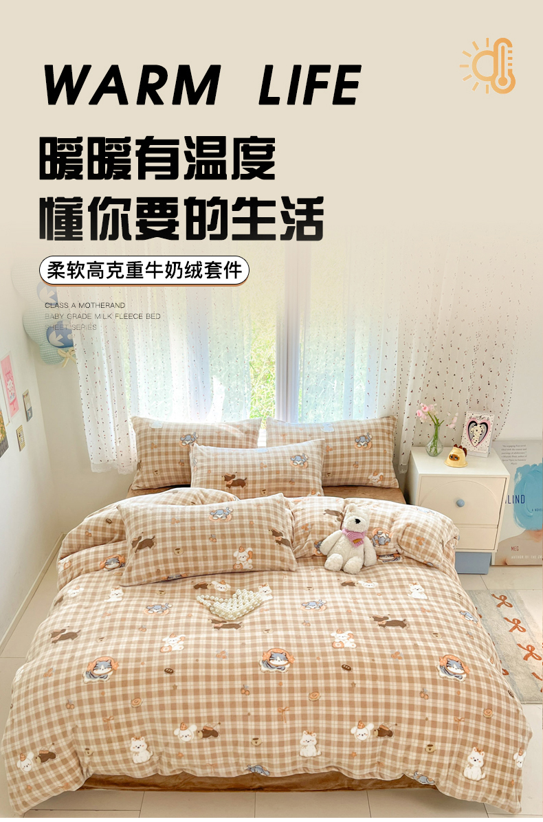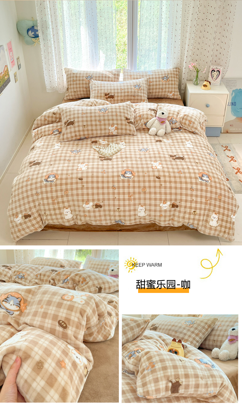 当前位置: 91家纺网 > 商品网购 > 床品套件 > 四件套 > 牛奶绒四件套 > 麦伦家居 2025新款双面200g牛奶绒四件套 甜梦乐园-咖