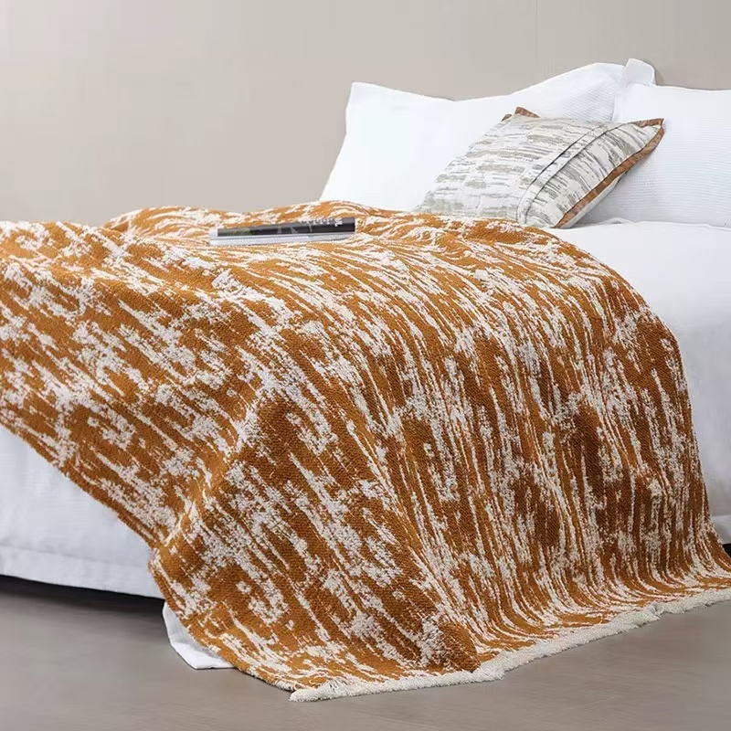 商品名称:安力森/诚臻酒店用品 2025新款轻奢毛绒卡其色床尾巾高级酒店床旗简约诧寂风搭巾民宿床尾毯搭毯 轻奢抽象刷纹浅灰