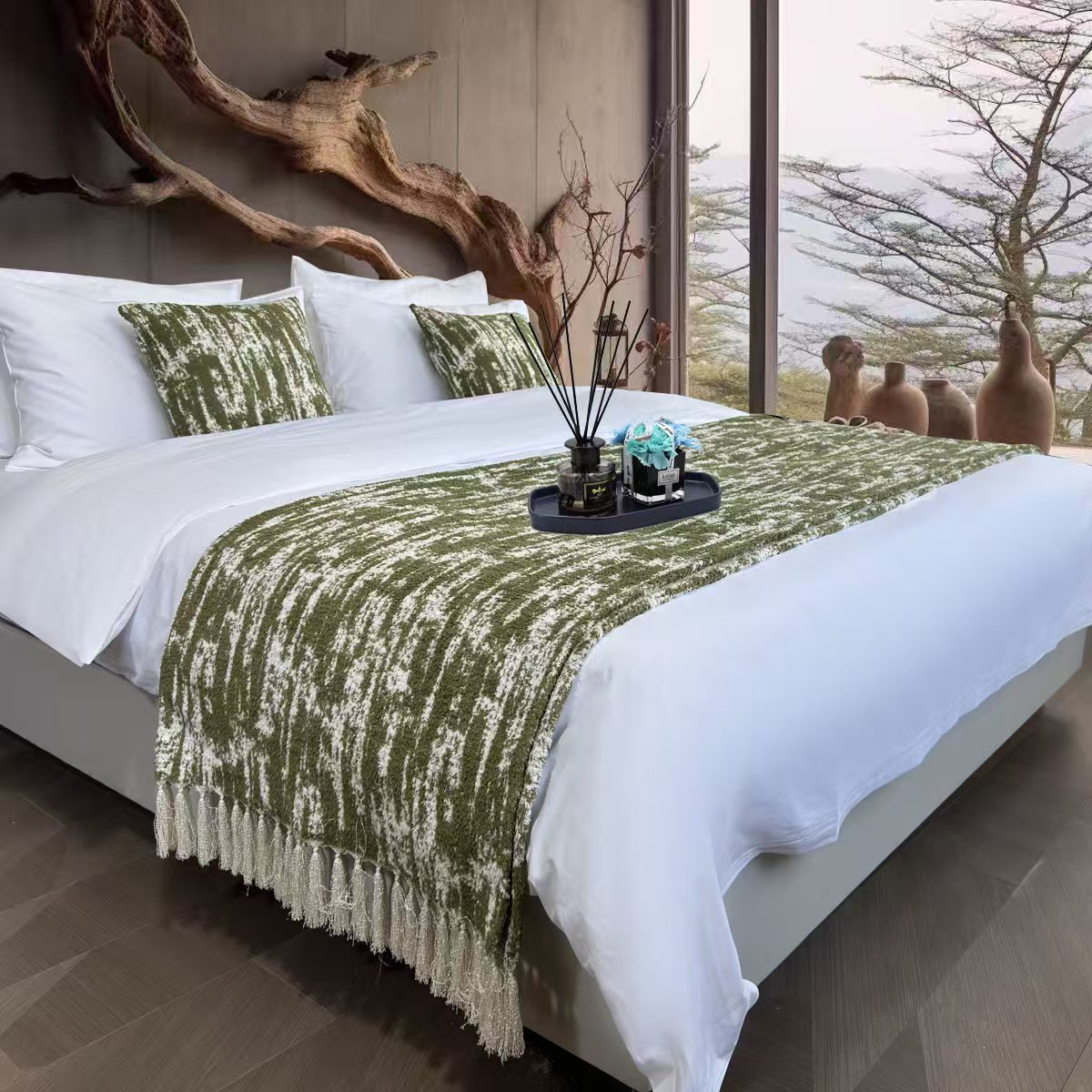 安力森/诚臻酒店用品 2025新款轻奢毛绒卡其色床尾巾高级酒店床旗简约诧寂风搭巾民宿床尾毯搭毯 轻奢抽象刷纹浅灰