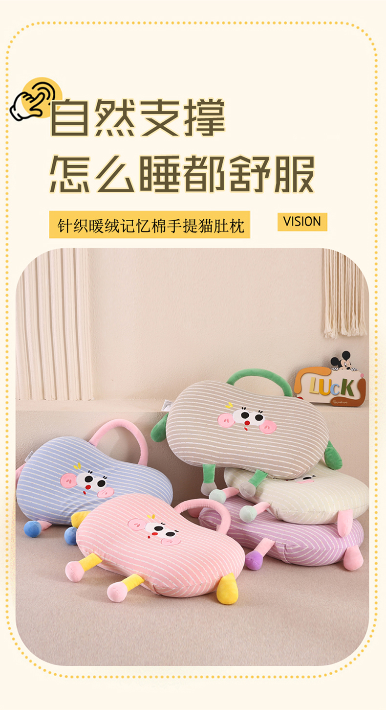商品名称:金牛枕芯 2025新款针织暖绒记忆棉手提猫肚枕头枕芯 手提猫-粉色
