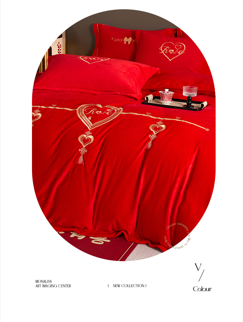 商品名称:默忆 2025新款婴儿绒刺绣婚庆四件套 恩恩爱爱