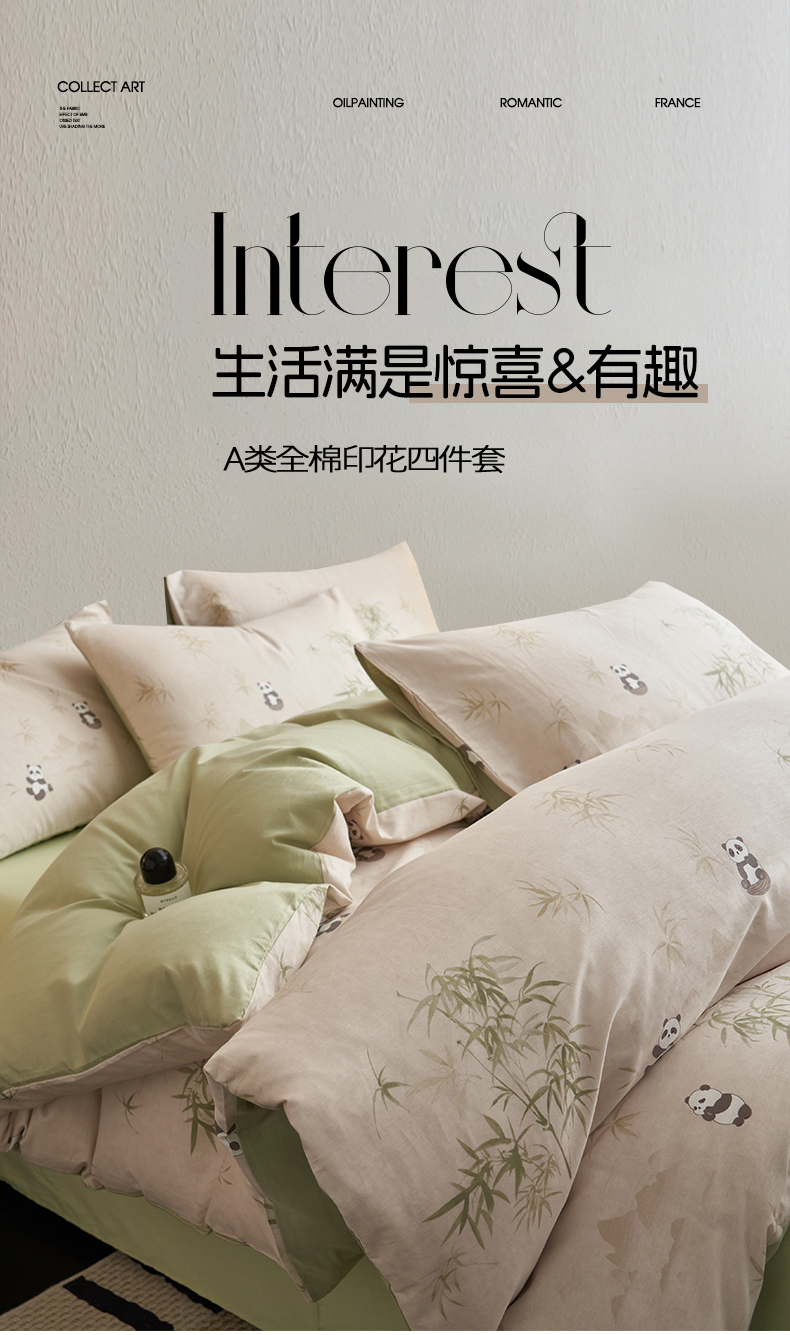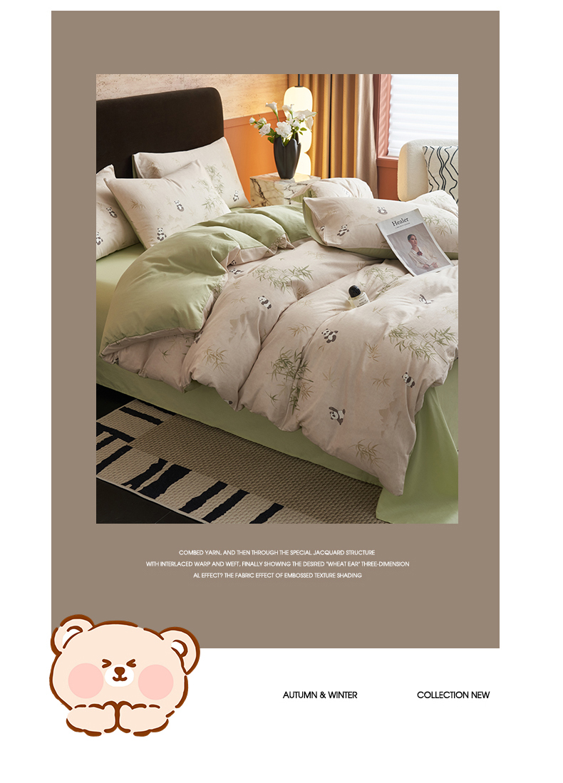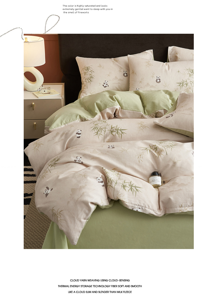 当前位置: 91家纺网 > 商品网购 > 床品套件 > 四件套 > 全棉普通四件套 > 恒爱家纺2025新款A类全棉印花四件套 竹居熊猫