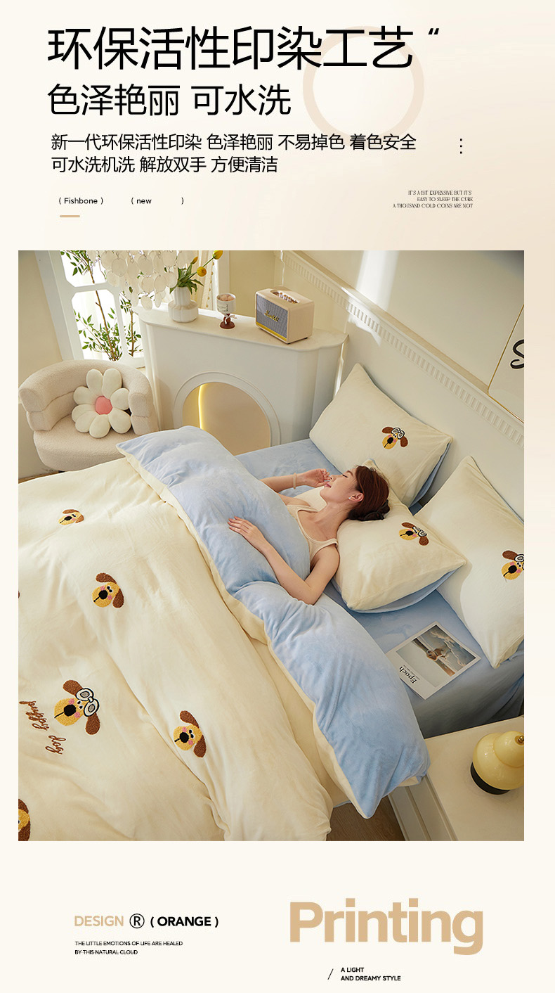 (总)楼兰公主毛毯专供 2025新款高克重230g牛奶绒数码印花毛巾绣卡通四件套,布拉拉,腊肠狗,奶油熊,淘气狗,小粉猫,小男孩,小苹果,小企鹅